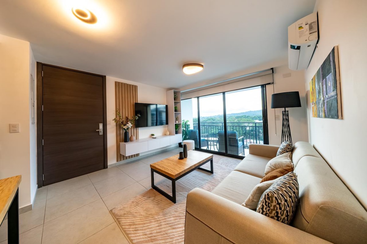 Modern, fully equipped apartment with panoramic views of San Salvador’s volcano. Located on the 9th floor of a residential complex in Santa Tecla, it’s ideal for working, relaxing, and unwinding. Surrounded by spacious green areas and recreational spaces that help balance your day between work, family, exercise, and rest. Conveniently close to supermarkets, restaurants, and a variety of shops, with quick access to main roads connecting to San Salvador, La Libertad, and the western region.