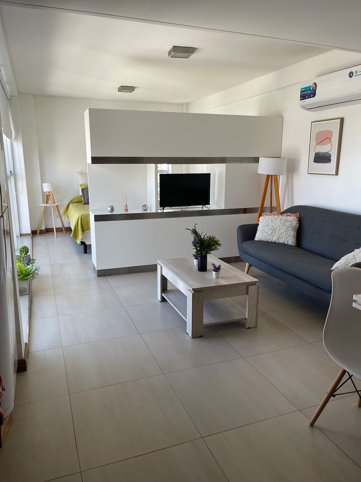 Mooi gloednieuw appartement op 3 blokken van het centrum van Moron. Het is op de zesde verdieping en is erg licht, dus het is ook erg rustig. Het heeft twee airconditioners, één in de woonkamer en één in de kamer. de woonkamer heeft een slaapbank met twee eenpersoonsmatrassen. Het beschikt over een balkon met grill, balkon en een wasruimte. Het heeft wifi en smart-tv Daarnaast heeft het toegang tot het terras van het gebouw met een prachtig uitzicht en een gepantserde deurgrill