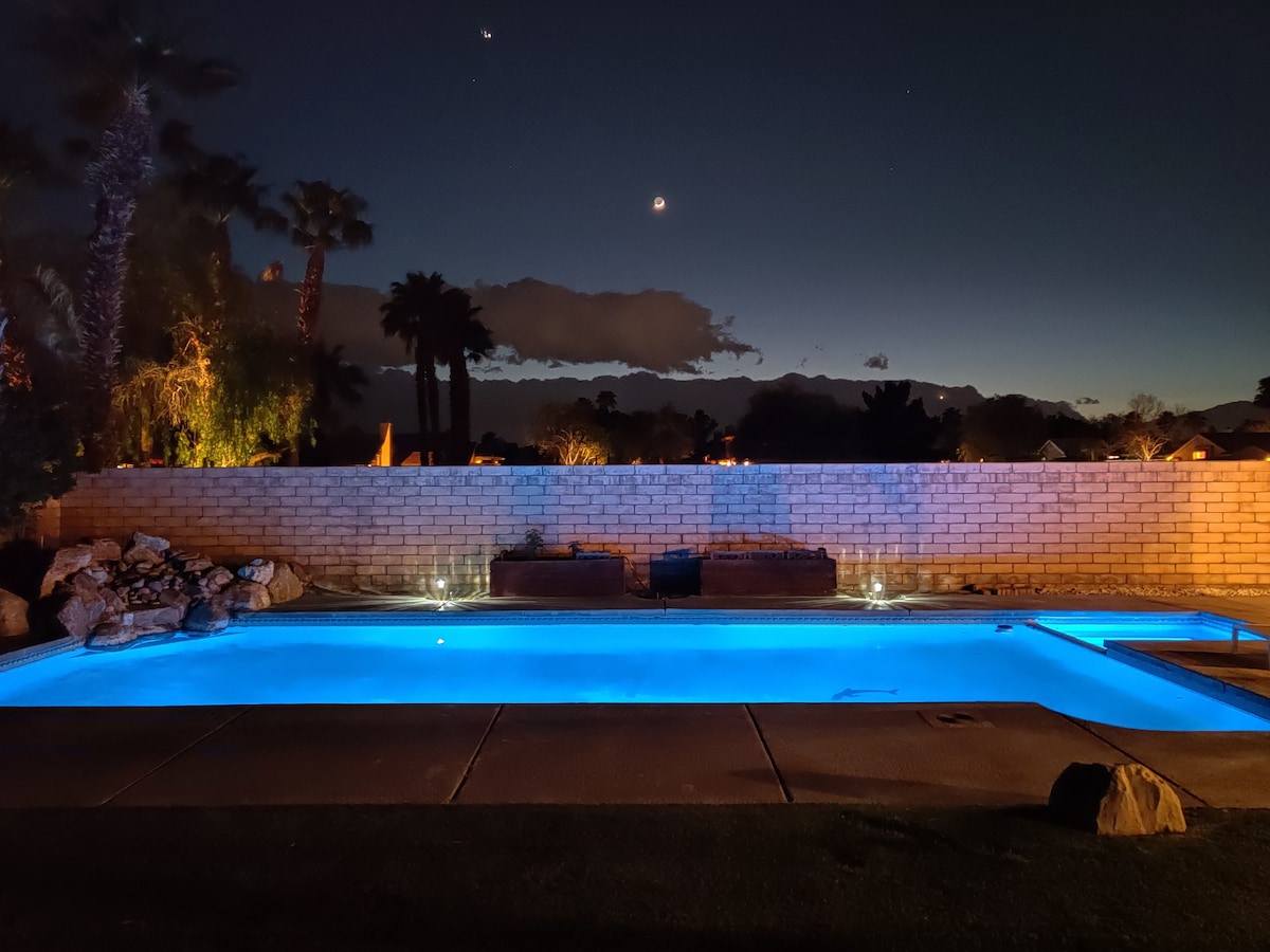 Enorm (20'x40') verwarmd/gekoeld zoutzwembad/spa met zonnedek/basketbalring. Het zetten van groen/vuurkorf in enorme achtertuin (0,32 hectare) omgeven door onbelemmerd uitzicht op de bergen. Grote patio met eettafel voor 10, 6 pits bbq grill/pingpong/cornhole. Airhockey/Tafelvoetbal/65inch tv met YoutubeTV/Netflix/Disney+. Een volledig gevulde gastronomische keuken, gezuiverd water, Nespresso machine. Hotel-stijl voorzieningen. Dicht bij alle winkels, restaurants, Tennis en Coachella. Geen feest toegestaan. LIC-067667