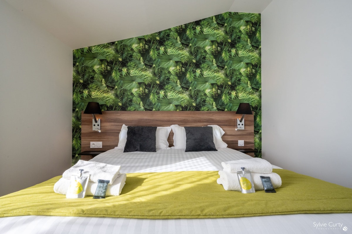 Discover the Deluxe rooms at the Champlain Hotel and let yourself be charmed by their serene atmosphere. Spacious (approximately 20m²) and bright, they offer a view of our flower garden and are the ideal place to relax. Their refined décor is sure to charm you. Equipped with king-size beds, air conditioning and double glazing, they guarantee peace and relaxation. The hotel is located just 5 minutes from the old port of La Rochelle.