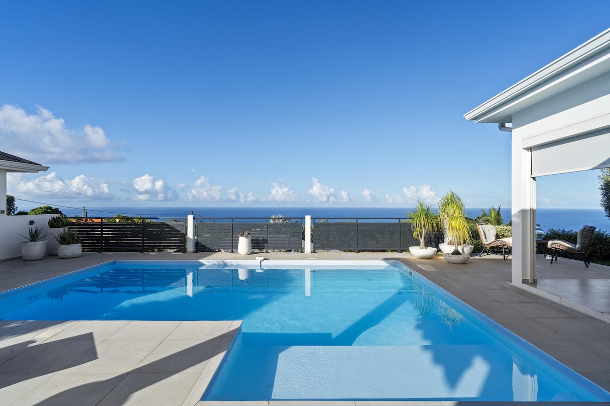 De Caribische villa van 110 m² woonoppervlak en het terras van 80 m² ligt op een heuvel in de directe omgeving van het bos dat grenst aan de stranden Een unieke ervaring voor je vakantie: een buitengewoon uitzicht, de nabijheid van de stranden, wandelingen naar de surfplekken Caravelle en Tartane (allemaal binnen twee of vijf minuten lopen), een privézwembad en een aangelegde tuin met fruitbomen en bloemen.