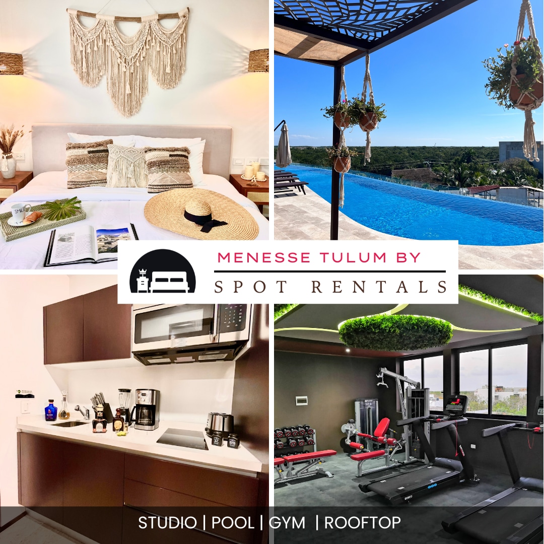 Dit studio appartement is geschikt voor onze gasten om te genieten van een lokale ervaring in het centrum van Tulum en op slechts enkele minuten afstand van de magische stranden en alles wat Tulum hotel zone biedt. We denken na over elk detail om aan de behoeften van alle soorten reizigers te voldoen. Of je nu op vakantie komt of/en onze ruimte werkt is voor jou. Het is gelegen in Menesses Tulum, een plek waar u een fitnessruimte, bioscoopkamer, ontspanningsruimte, zwembaden en meer vindt.