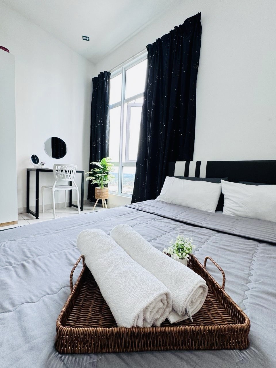 Verken onze gezellige studio, die geschikt is voor 2 tot 3 personen met een queensize bed en een slaapbank. Slechts 15 minuten rijden van KLIA T1/T2, de plaats is omgeven door vele restaurants, fastfoodfilialen, boodschappen en waswinkels, allemaal op loopafstand. Geniet van alle voorzieningen, waaronder de kinderspeeltuin, barbecueplek, fitnessruimte en zwembad, met 24/7 beveiliging. * Niet beschikbaar om je bagage voor de inchecktijden af te geven. Vanwege het ontworpen gebouw, moet je een trap van 10 treden lopen om de lift te krijgen.