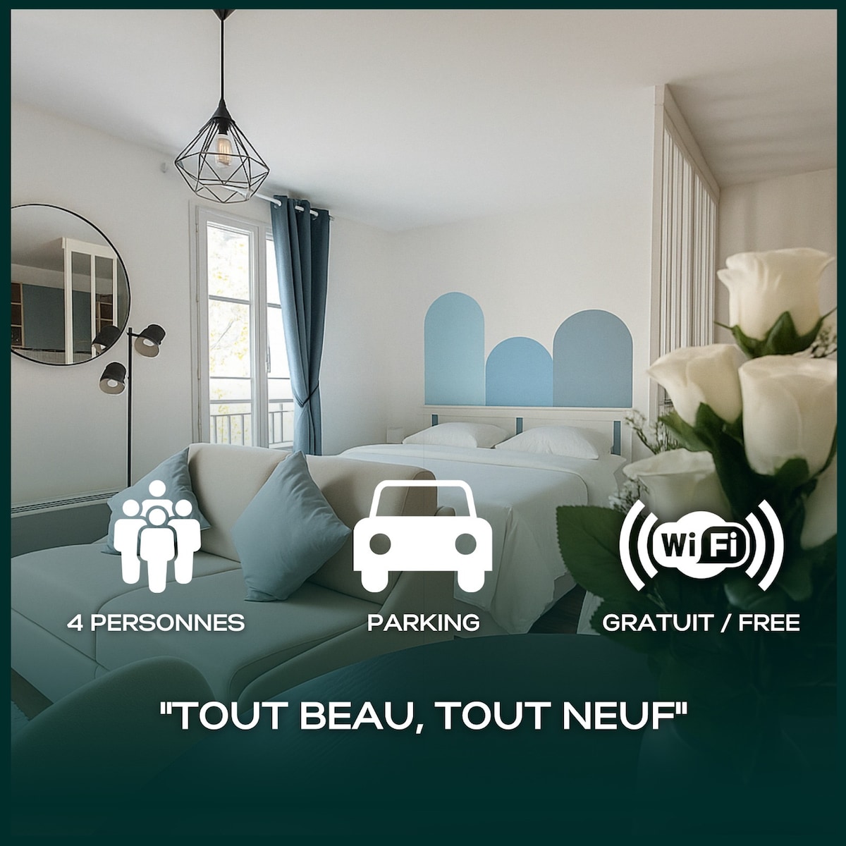 Verblijf in een elegante Haussmann-stijl accommodatie op 5 minuten van Disneyland Parijs. - 4 slaapkamers / 5 bedden 🛏️ - woonkamer / 1 bed (slaapbank met matras) 🛏️ - 3 badkamers (douches) 🚿 - 3 toiletten met waterstraal 💦 🚽 - Gemeubileerde keuken 🍽️ - Grote gezellige woonkamer met 4K SMART-TV 📺 - Terras met uitzicht op de stad 🌃 🌆 🏙️ - Balkon met uitzicht op de tuin Supersnelle wifi Beddengoed gewassen en gestreken voor je aankomst. Comfort, stijl en perfecte locatie voor een onvergetelijk verblijf!