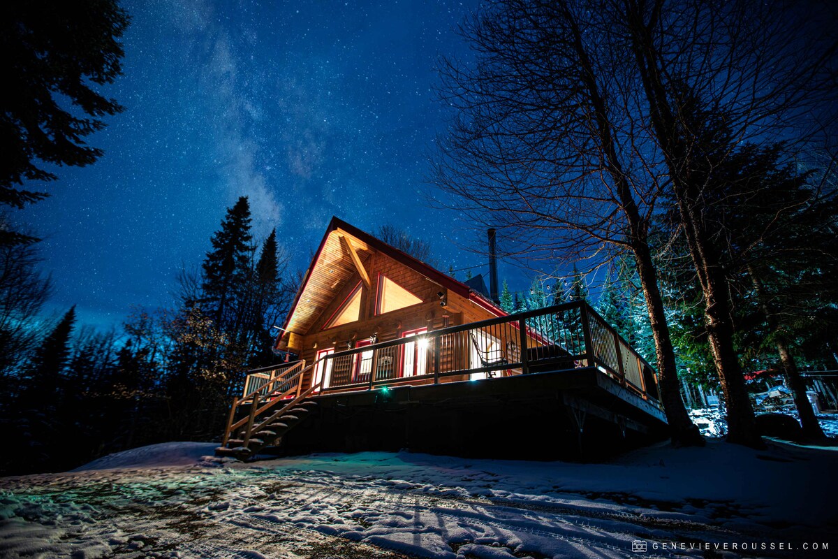 En plein cœur de la forêt, le chalet de la traverse à tout pour vous plaire . Un petit chalet pouvant accueillir confortablement quatre personnes, mais possibilité d'être jusqu'à six . Une chambre fermée comprenant un lit Queen, une mezzanine avec deux lits Queen. Vous disposerez d'une cuisine complète, de literie et de serviettes, laveuse et sécheuse, BBQ, spa, d'air climatisé, un foyer intérieur et extérieur, de petits sentiers de marche et vous serez à 15 min du centre de ski Mont Orignal