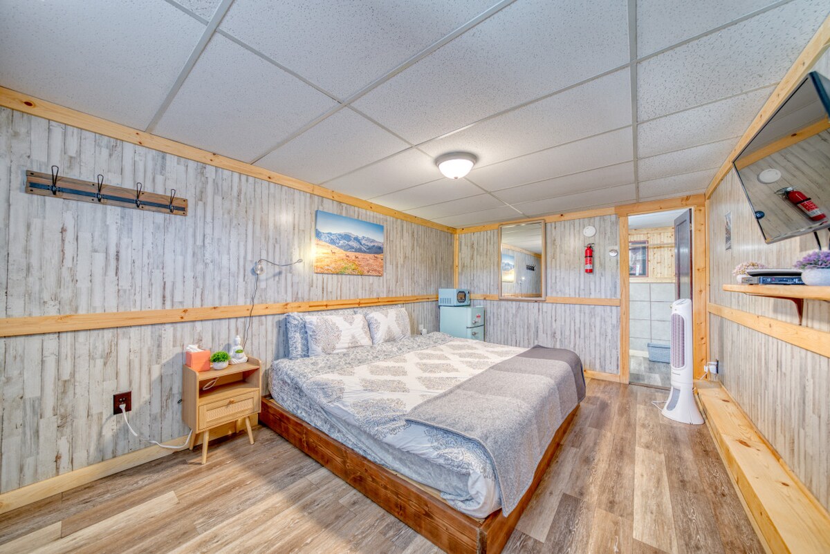 **Houd er rekening mee dat er meer dan $ 40 aan belasting over huisdieren in rekening wordt gebracht, per huisdier, per verblijf. Er zal een extra boete van $ 50 zijn als huisdieren naar de accommodatie zijn gebracht zonder ons op de hoogte te stellen. Vanwege een ernstige allergie die een van onze medewerkers heeft, zijn we helaas niet in staat om katten te ontvangen. Deze kamer is hondvriendelijk, niet katvriendelijk. ** Mijn man en ik kochten het Mountain Peaks Motel Jan 2021. Omdat we het pand hebben gekocht, hebben we voor alle kamers volledig gerenoveerd. We zijn gunstig gelegen in het hart van Leadville. Wandelen