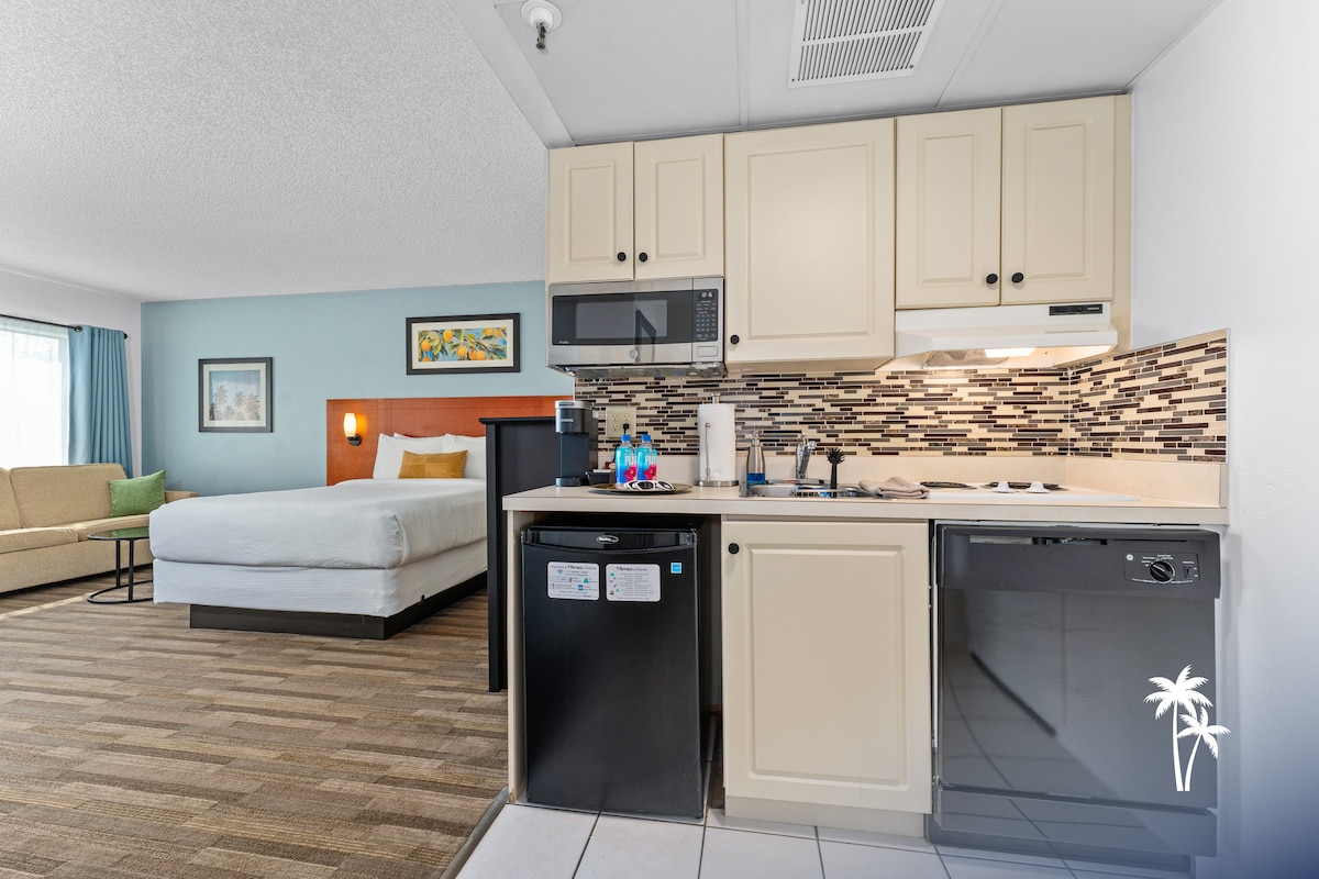 Modern, spacious, and serene, this studio offers beautiful lake and pool views from your own private terrace—perfect for unwinding after a day of adventure. Ideally located just off International Drive, you’ll be close to Orlando’s top attractions, dining, and shopping. Enjoy unbeatable convenience with Universal Studios/Epic Universe only 5 minutes away and Disney Parks just 15 minutes away. No deposit required and no extra fees.