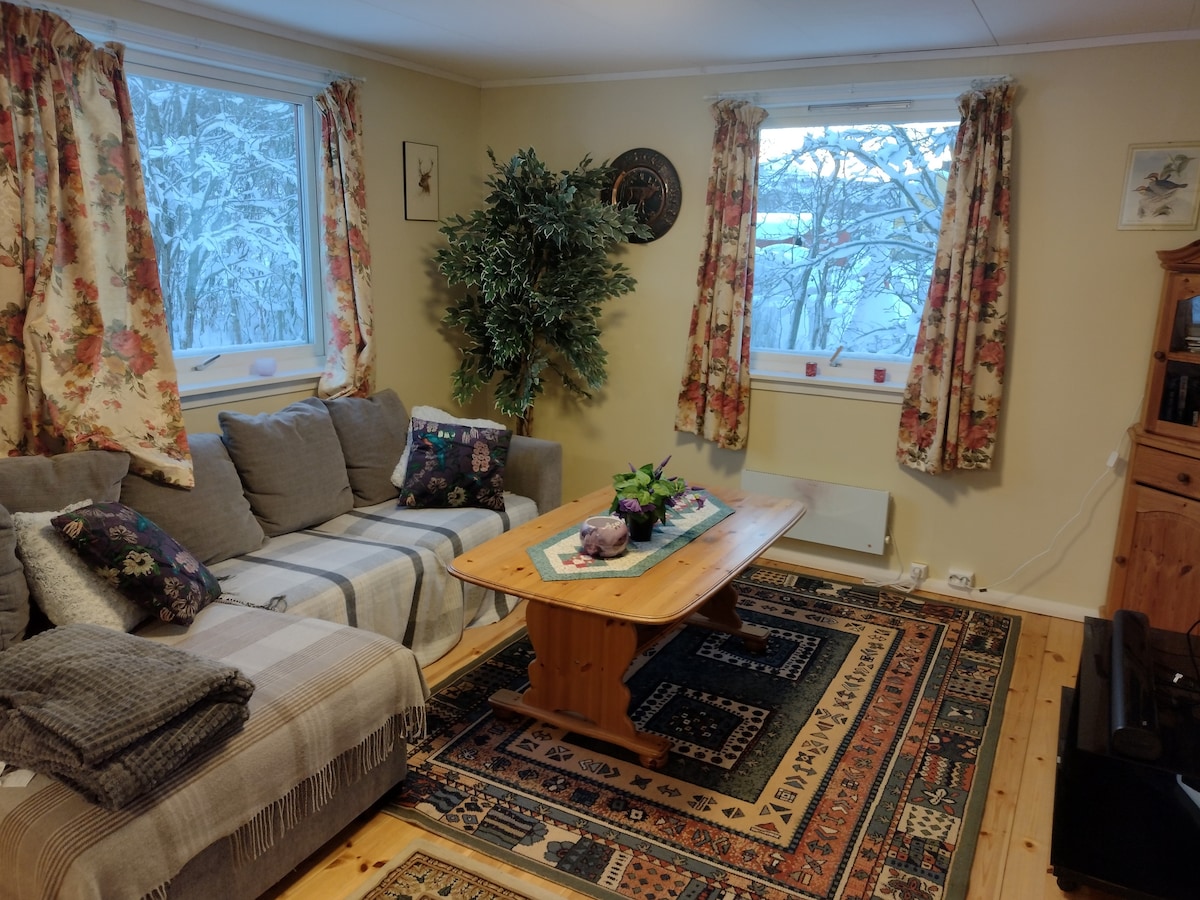 Hallo :) Ik heb een appartement met een prachtig uitzicht voor je beschikbaar. Je hebt slaapkamer, woonkamer, badkamer en keukenkamer alleen voor jou tijdens je verblijf😄 Het gebied is perfect voor noorderlicht, skiën en ijsvissen in de winter. Je kunt gewoon wachten in de woonkamer op de Aurora 💚😊 In de zomer kun je hier heerlijk vissen en wandelen op het strand. De locatie van het huis ligt naast de hoofdweg E8, gemakkelijk om naar een andere stad te reizen, gemakkelijke toegang en een bushalte ook direct voor de deur. 😊