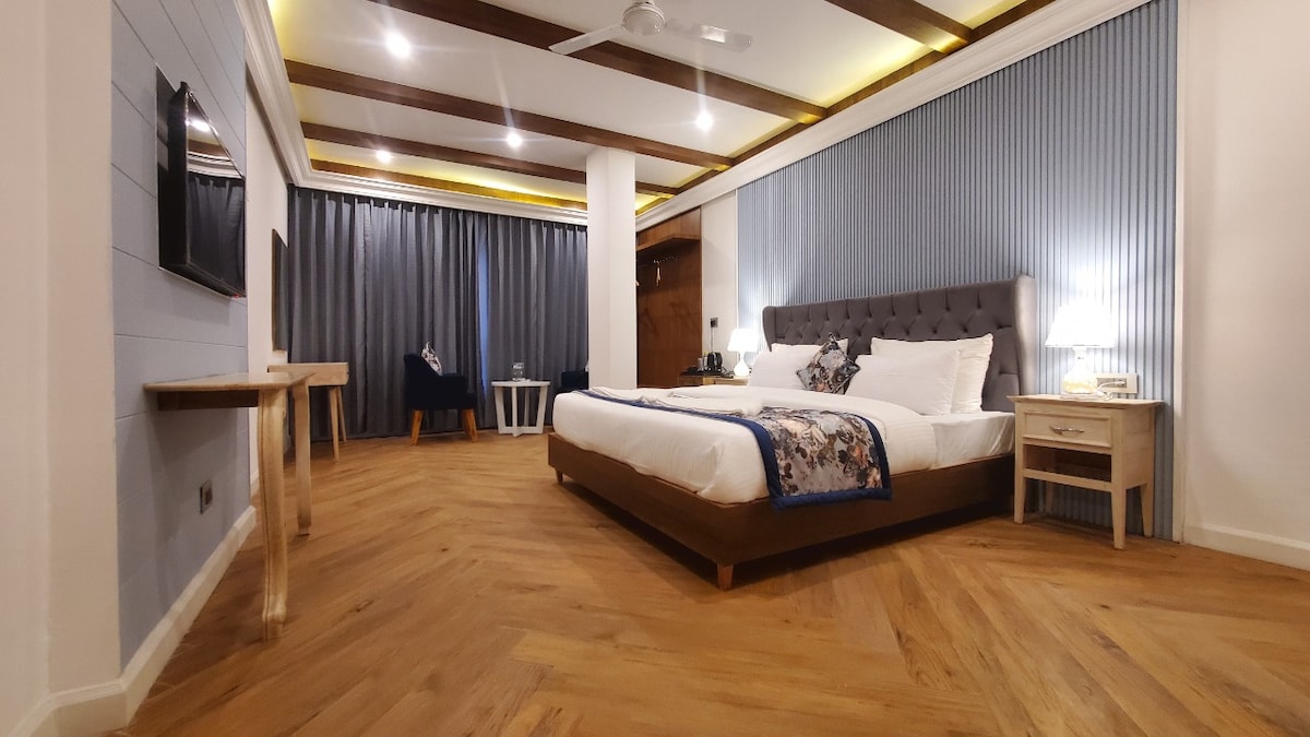 Onze Super Premium-accommodatie met 10 kamers ligt in het hart van de Queen of Hills en biedt een ongeëvenaarde mix van luxe, comfort en adembenemende natuurlijke schoonheid. Gelegen aan de hoofdweg voor gemakkelijke toegang, maar toch omringd door serene landschappen, weelderige tuinen en rustige vibes, is dit exclusieve toevluchtsoord ontworpen om een echt magische ervaring te bieden. Geniet van een panoramisch uitzicht op de Mussoorie-heuvels, voorzieningen van wereldklasse en een naadloos verblijf met geweldige parkeerfaciliteiten direct op het terrein.