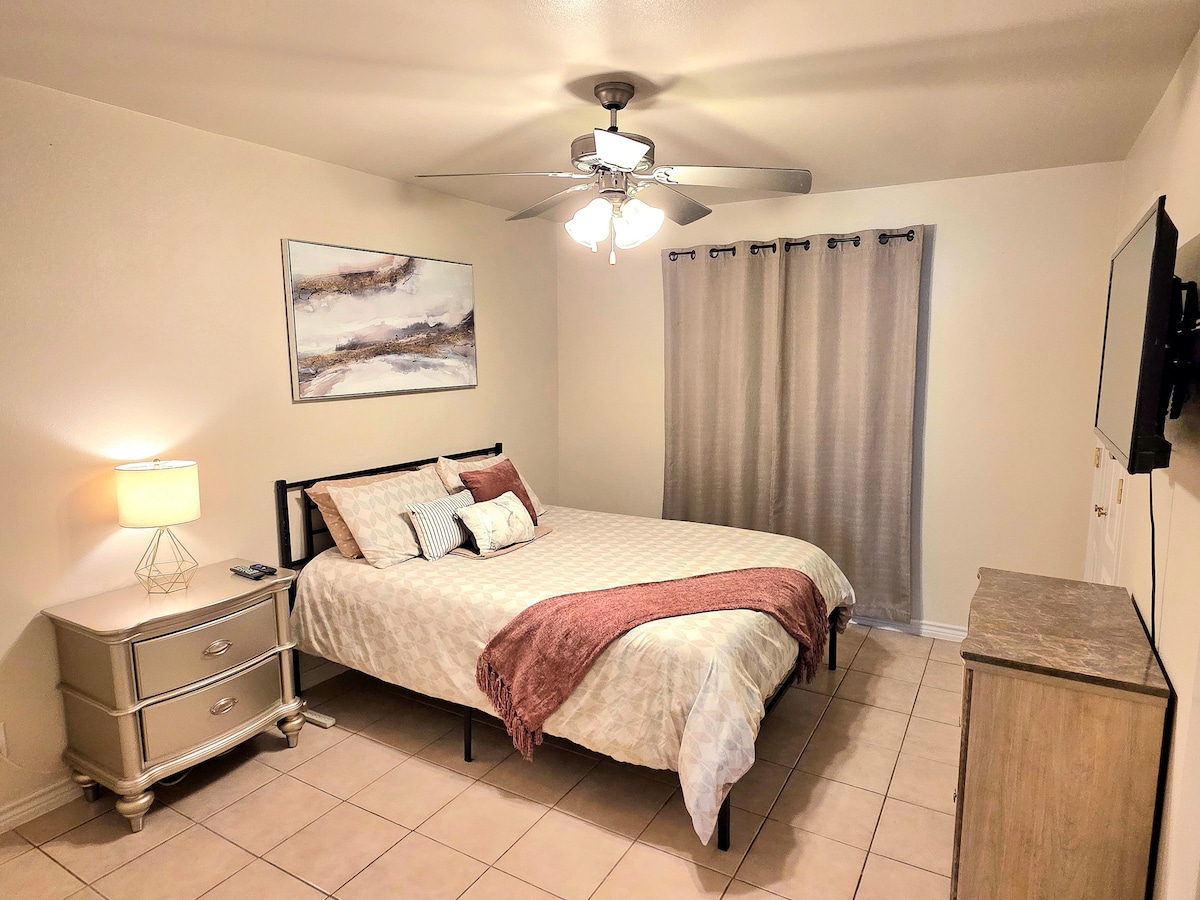 Escape to Casa Azul—a chic retreat featuring a luxurious bathroom, fully equipped kitchen, and cozy living space with modern decor. Relax on plush bedding, enjoy community grills under a shaded palapa, and feel secure with gated access. Just steps from major shopping like Target and Sephora. Perfect for a comfortable stay in a prime location. ✅ Gated community with secure parking ✅ Modern bathroom w/ luxurious finishes ✅ Fully equipped kitchen ✅ Smart TV ✅ Free in-unit washer and dryer