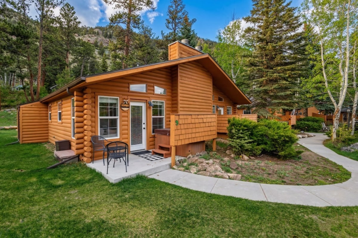 Unwind in your own private hot tub on the banks of beautiful Fall River, Permit 6222. Can't beat that after a long day hiking in Rocky Mountain National Park. Conveniently located minutes to both Estes Park and Rocky Mountain National Park. - Private patio and hot tub - Riverfront property - Stocked fishing access - 5 mins to Park Entrance and downtown - Private & quiet neighborhood of other cabins - Fireplace, K bed Unbeatable basecamp for 2!