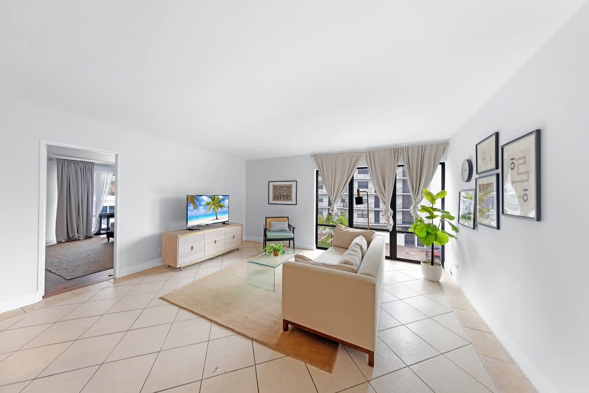 Enjoy a spacious 1-bedroom apartment with direct access to a shared heated pool on the same level. The apartment features a king-size bed, in-unit washer and dryer, dishwasher, fully equipped kitchen, and provides one set of towels per guest, along with beach towels and chairs. Stay connected with high-speed internet and a smart TV. Please Note: A $25 /day pool fee applies from November 1st to April 30th. one small dog( up to 15 Ib) is allowed, extra charge for shedding dogs.