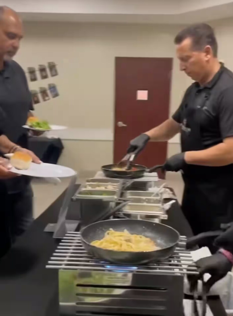 Een cateringbedrijf van topniveau dat live op locatie kookt en verse, warme en smakelijke gerechten serveert, terwijl het gasten een verhoogde ervaring biedt waar ze echt van genieten.
