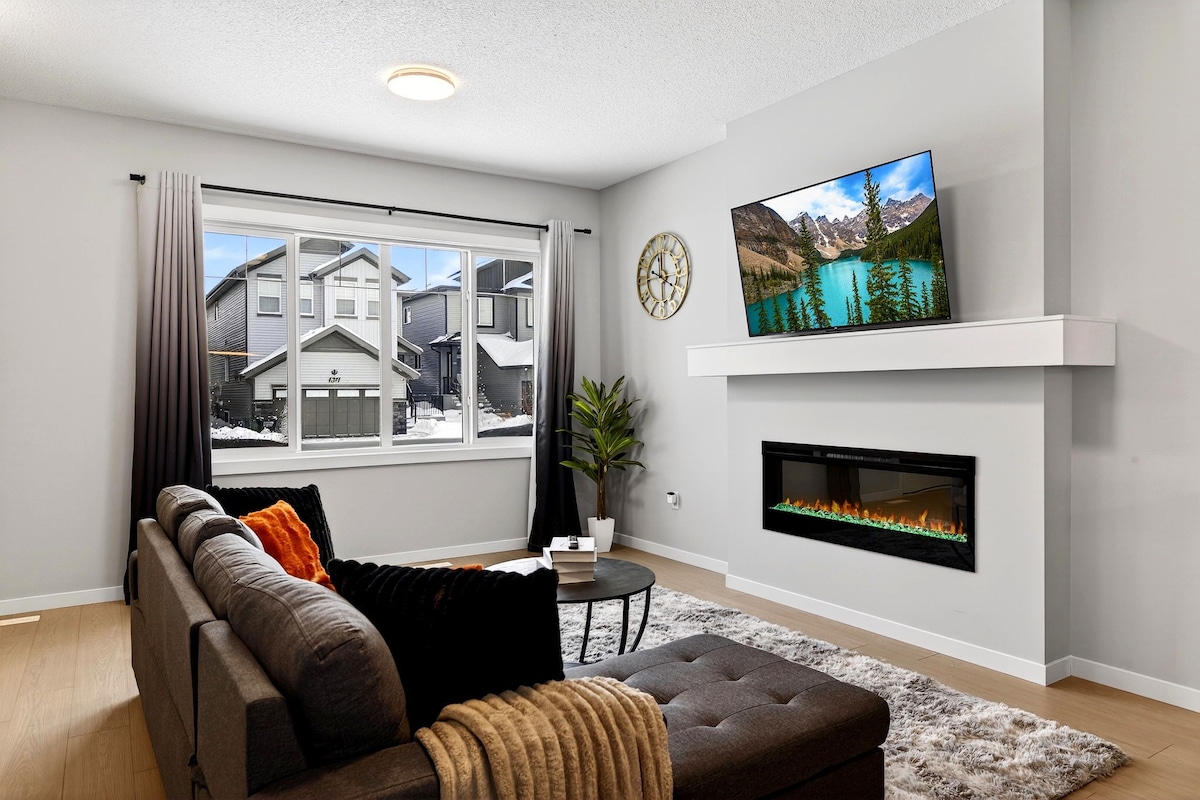 Welcome to our brand new all exclusive basement suite in a family friendly neighborhood of Laurel, Edmonton, Alberta. You have exclusive access to this suite with luxurious comfortable King bed & smart TV, well decorated living room w stylish Sofa bed & coffee table that turn into dining table for 4 guests & fully equipped kitchen. Modern bathroom with shower/bath tub combo, in suite dedicated laundry. No sharing w upstairs. Guests are welcomed with complimentary refreshments & bottled water.