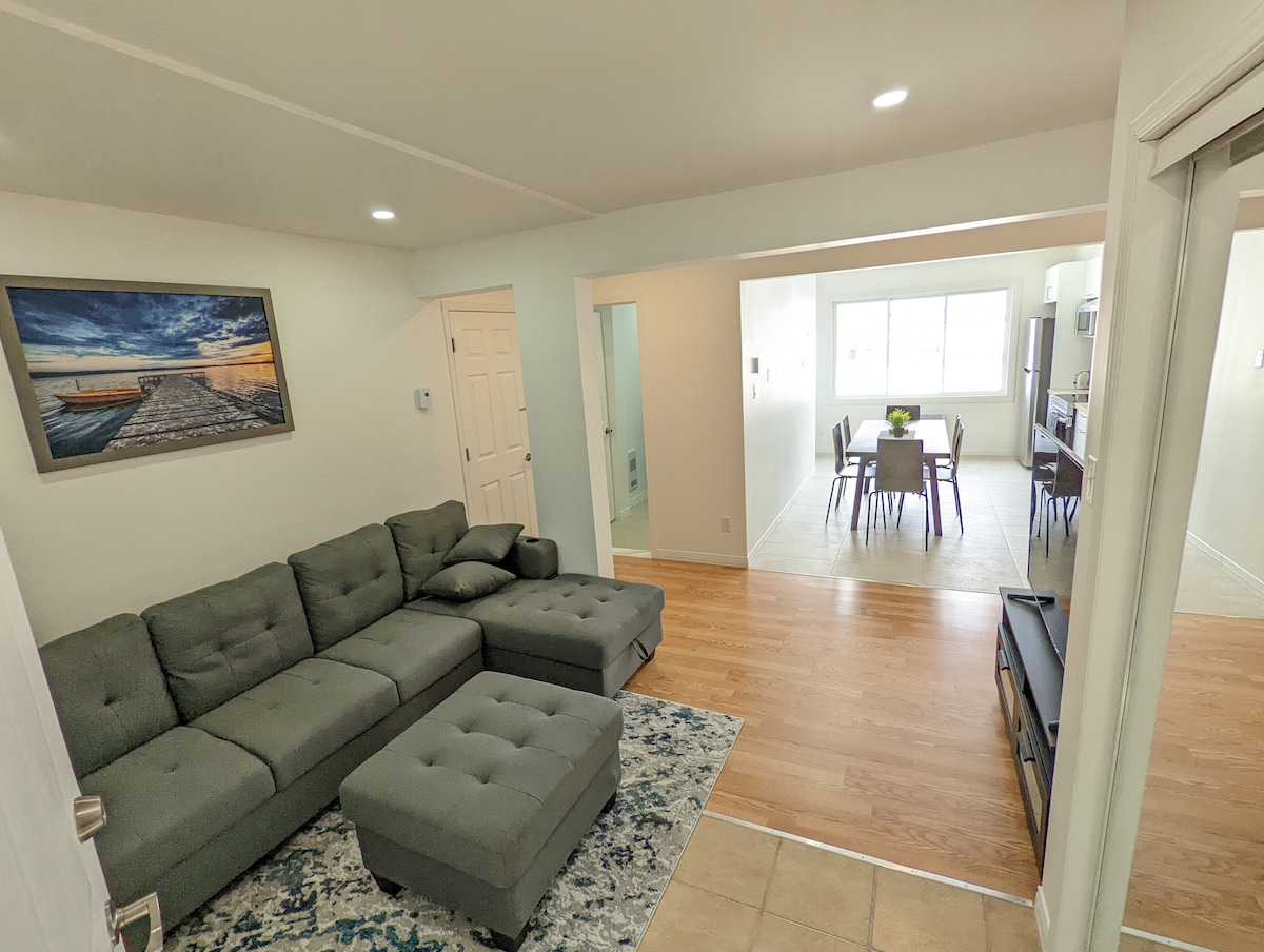 Modern comfort in de buurt van YUL Airport! Dit stijlvolle toevluchtsoord ligt op slechts 15 minuten van YUL en biedt een oase van modern comfort. Je vindt er alles wat je nodig hebt voor een ontspannen verblijf, waaronder een volledig uitgeruste keuken om tot rust te komen na een lange dag. Leun achterover, geniet van een gratis kopje koffie of thee en kijk naar je favoriete Netflix-programma. Boek nu en ervaar de perfecte mix van gemak en stijl.