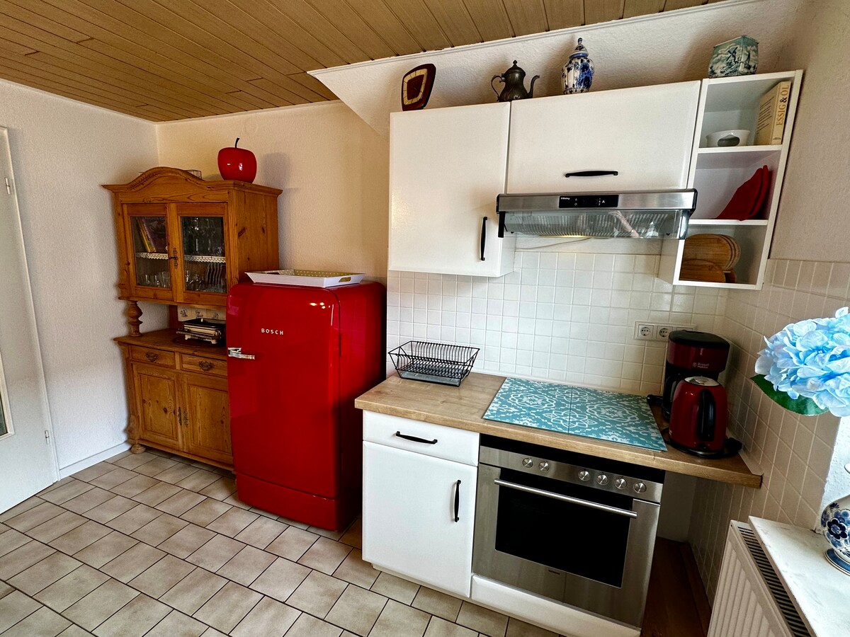 Beste gasten, Wij zijn blij dat u ons appartement heeft ontdekt. Dit kleine en moderne appartement is gelegen op een centrale locatie van Leer (Oost-Friezië) en is daarom ideaal als je de stad te voet wilt verkennen. Het vakantieappartement is een zelfstandig appartement in ons eigen huis, maar wel begrensd en met eigen opgang. Het is gelegen op de begane grond van het huis.