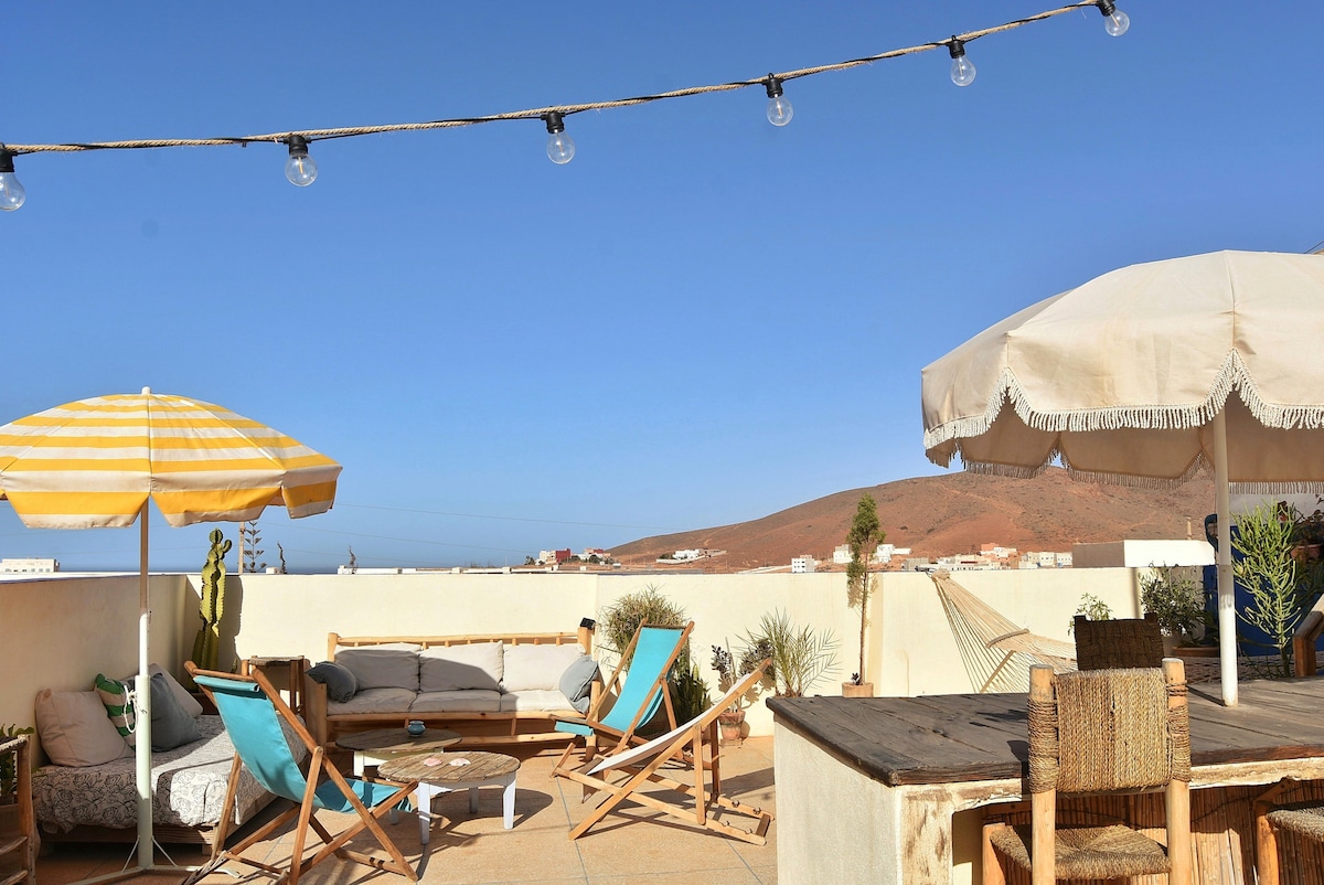 Epische golven en wilde landschappen: Marokkaans avontuur wacht op je. Onze terraskamer die deelt met het andere appartement genesteld tussen de dromerige stranden van Aftas, Marrabout en de legendarische plek van Tamhrouchte, is een ideaal basiskamp voor surfers, of een perfect toevluchtsoord om te ontspannen.