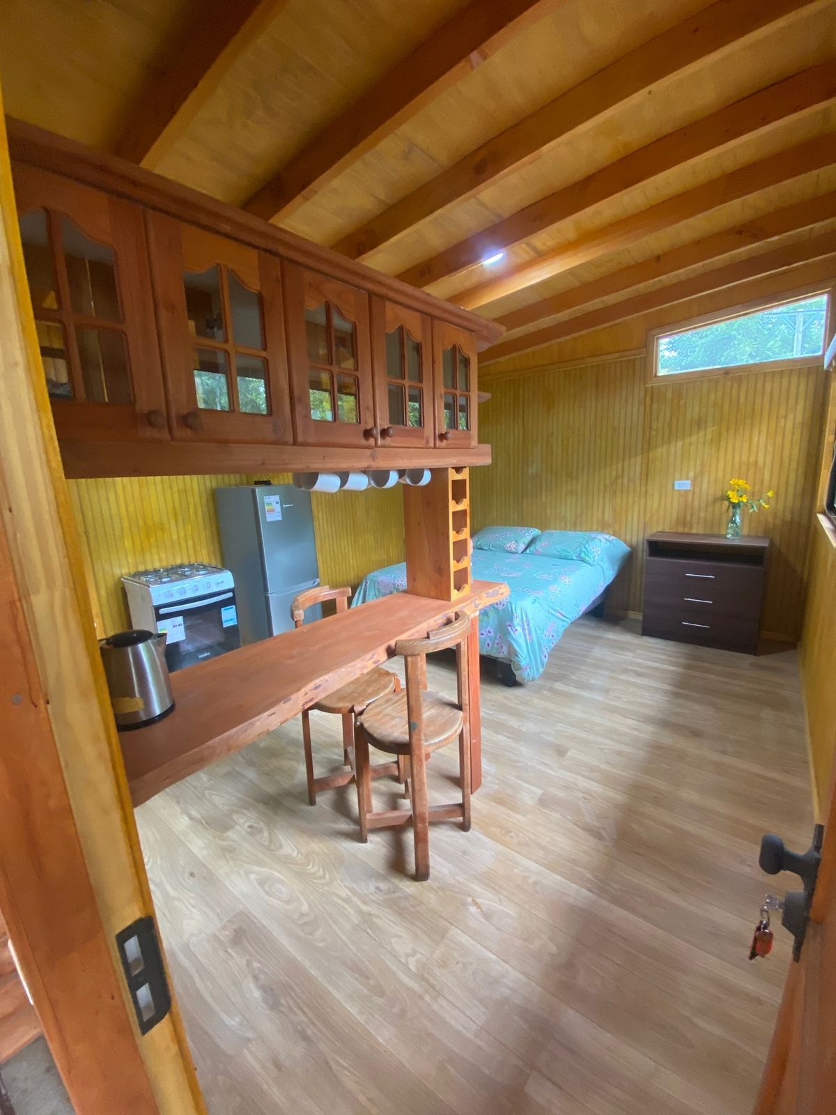 Cabaña de 1 ambiente + baño, ideal para dos personas que buscan un lugar cómodo, acogedor y con todo lo necesario para una linda estadía. A 1800 metros de la playa y del pueblo (20 min. caminando y 5 en vehículo). Estacionamiento, tv, wifi, agua caliente, cocina equipada, calefacción. Desde Lican Ray puedes visitar lugares turísticos cómo Huilo Huilo, termas, Pucon , Coñaripe, Panguipulli, actividades acuáticas. Ver foto 14 para claridad de acceso y distancias NO está frente al lago.