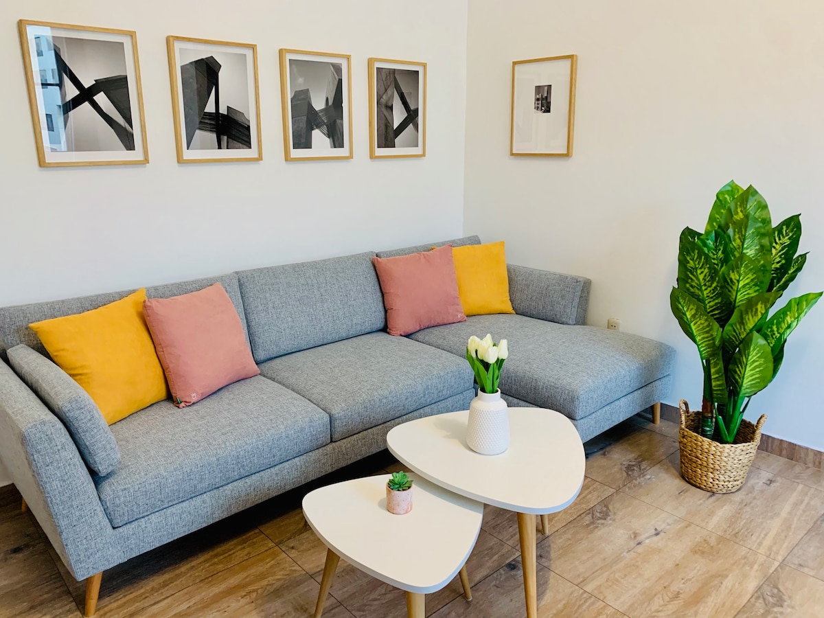 Elevated Boutique Loft in central Miraflores with a king suite, private bath, walk-in closet, and leafy balcony. Architectural interiors blend comfort and design with a bright living area and gourmet kitchen. Enjoy Smart TVs, fast WiFi, washer/dryer, and 2 parking spaces. Steps from Kennedy Park and the ocean — a refined boutique stay for design lovers and modern travelers.