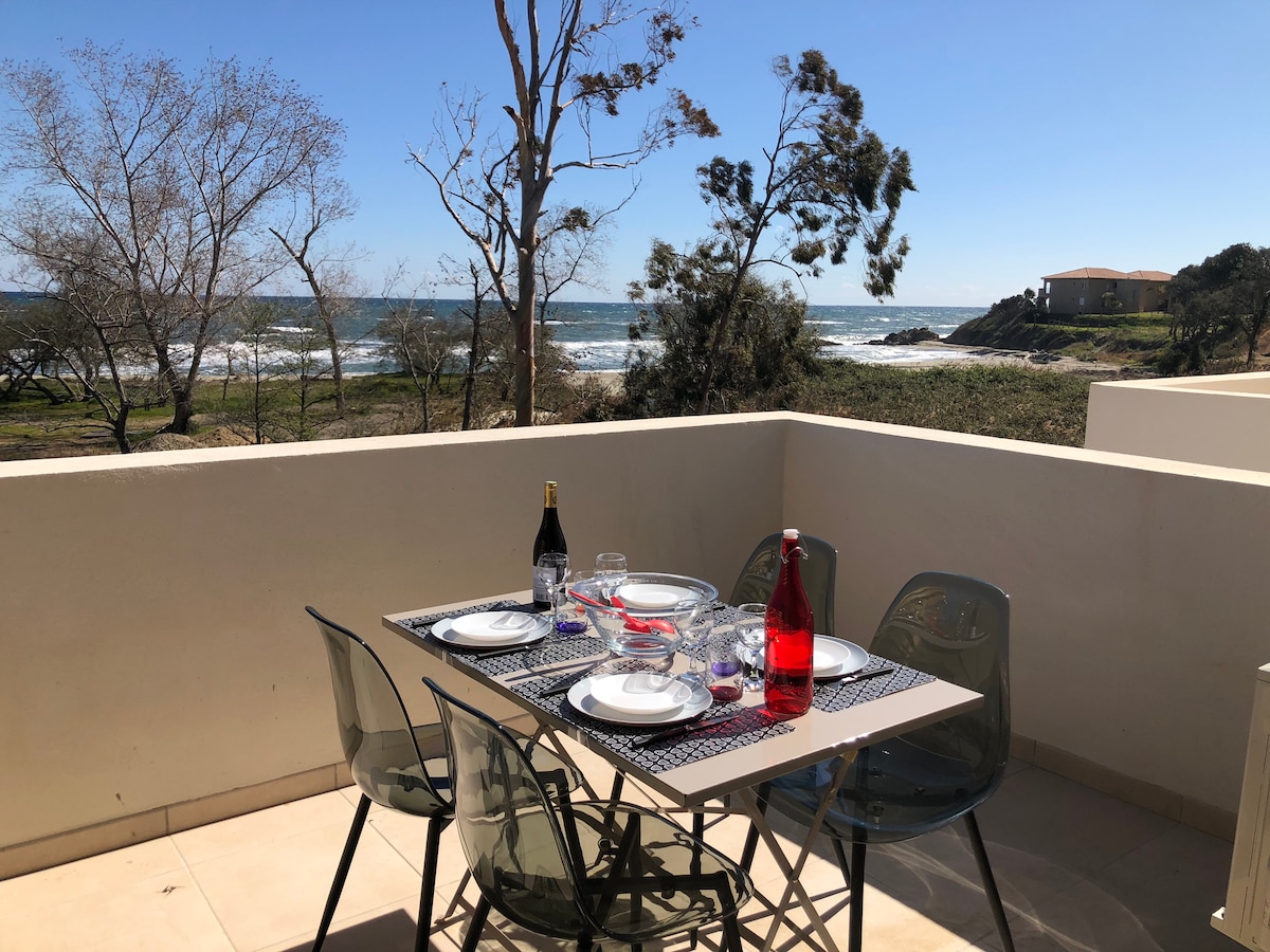 Ce logement affiche un style résolument unique, en front de mer, avec une superbe vue mer. Sur la côte orientale à 45mn de l'aéroport et 1h du port de Bastia. Depuis l'appartement vous pouvez visiter la Corse du Nord au Sud. Les pieds dans l'eau plage de sable fin à 100 mètres avec accès direct par chemin piétonnier dans la résidence et portillon pour accéder à la plage, piscine chauffée. A 300m de petites criques très agréables et intimistes n'attendent que vous.