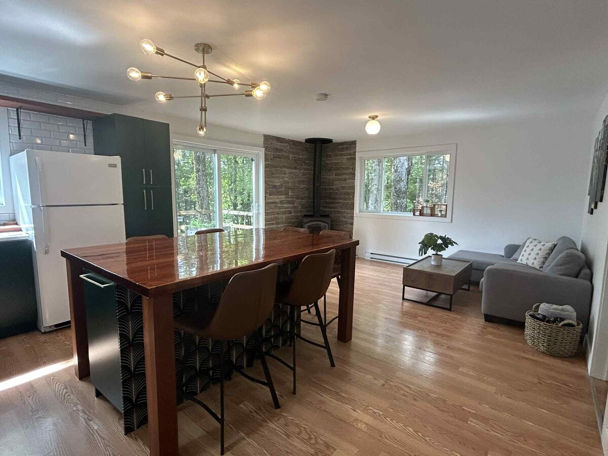 🌲 De rust van het volledige bos Ontspan tussen de open haard en de spa. Ontspan in dit gezellige, rustige en stijlvolle huisje. 🏡 Het dorp Audet is een landelijk dorp. De belangrijkste diensten zijn in Lac-Mégantic, op 13 km afstand. 🌄 Een ruimte om te ontdekken De regio Lac-Mégantic biedt verschillende activiteiten, vooral buitenactiviteiten. Het is minder ontwikkeld dan Magog of Tremblant - en zo is het perfect! Je komt hier genieten van de natuur, laad je batterijen op en vertraagt het tempo.