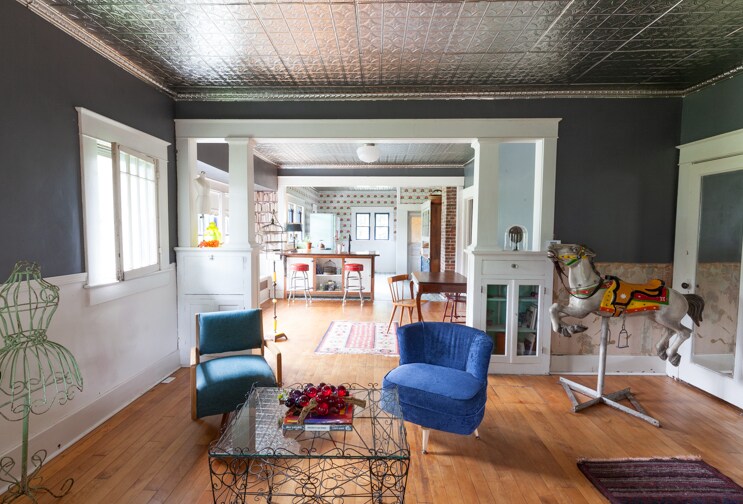 Welcome to our beautifully updated, entire house located on a quiet street within walking distance from Marceline’s famous Main Street USA. This mid-century modern house perfectly blends historic charm with brand-new comfort. It is a comfortable retreat for Disney enthusiasts, families, and remote workers seeking a peaceful, nostalgic stay in the Boyhood Home of Walt Disney. This two-bedroom, one bath home provides a fully stocked coffee bar, dedicated workspace and full kitchen.