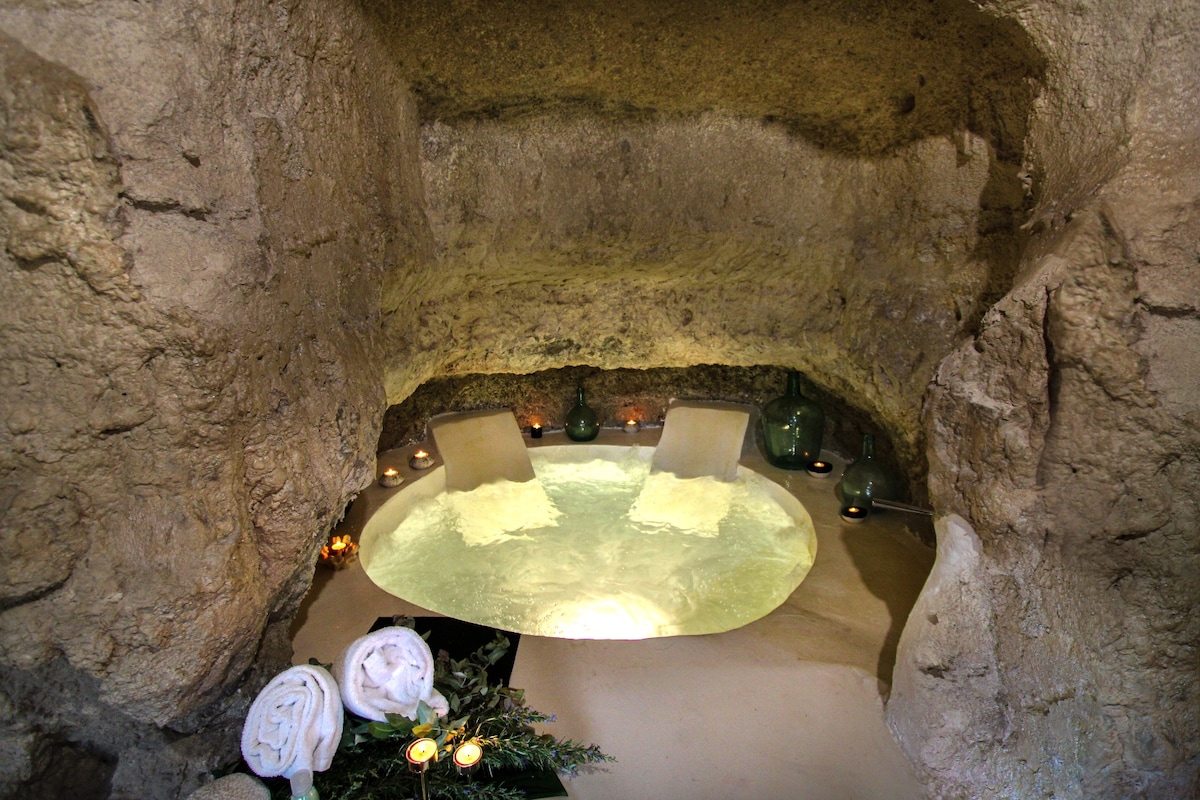 PIACORY is een eeuwenoude grot, die in 2022 volledig is gerehabiliteerd. Het bestaat uit 100 m2, verdeeld in twee verdiepingen, een eerste verdieping, met een grote woonkamer met keuken. Op de tweede verdieping hebben we een slaapkamer met een KINGSIZE bed en een eigen verwarmde jacuzzi. Vanuit de slaapkamer van de suite heb je toegang tot een spectaculair privéterras van 50 m2, waar zich een privézwembad bevindt, dat niemand onverschillig zal laten