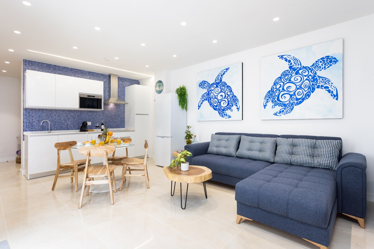 Estudio con fachada directa al mar donde podrá disfrutar de las vistas y puestas de sol espectaculares, en zona peatonal muy tranquila, dentro de un pueblo maravilloso en el que tendrá entre otros servicios: transporte público (bus, taxi), aparcamientos públicos gratuitos, restaurantes, comercios de alimentación, ambulatorio (a quince "15" minutos caminando), hospital ( a veinte "20" minutos). Excepcional para descansar. A cinco "5" minutos caminando se encontrará en Playa Jardín.