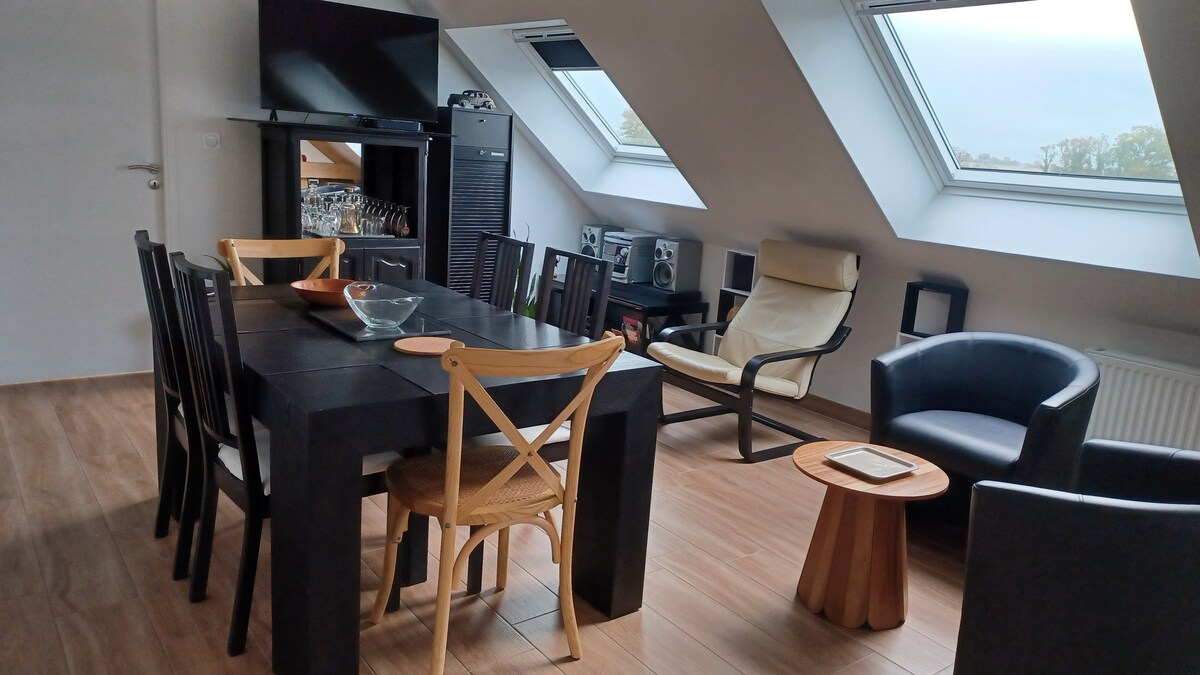 Dit nieuwe zolderappartement van 50 m2 ligt op de eerste verdieping van het huis op 15 minuten van Laval. Het beschikt over: - een woonkamer met uitgeruste keuken + een woonkamer. - een slaapkamer met een tweepersoonsbed 140-190 + een eenpersoonsbed 120- 190 + een speciale kantoorruimte. - een onafhankelijke slaapruimte met een 2-zits slaapbank. - een doucheruimte +WC.