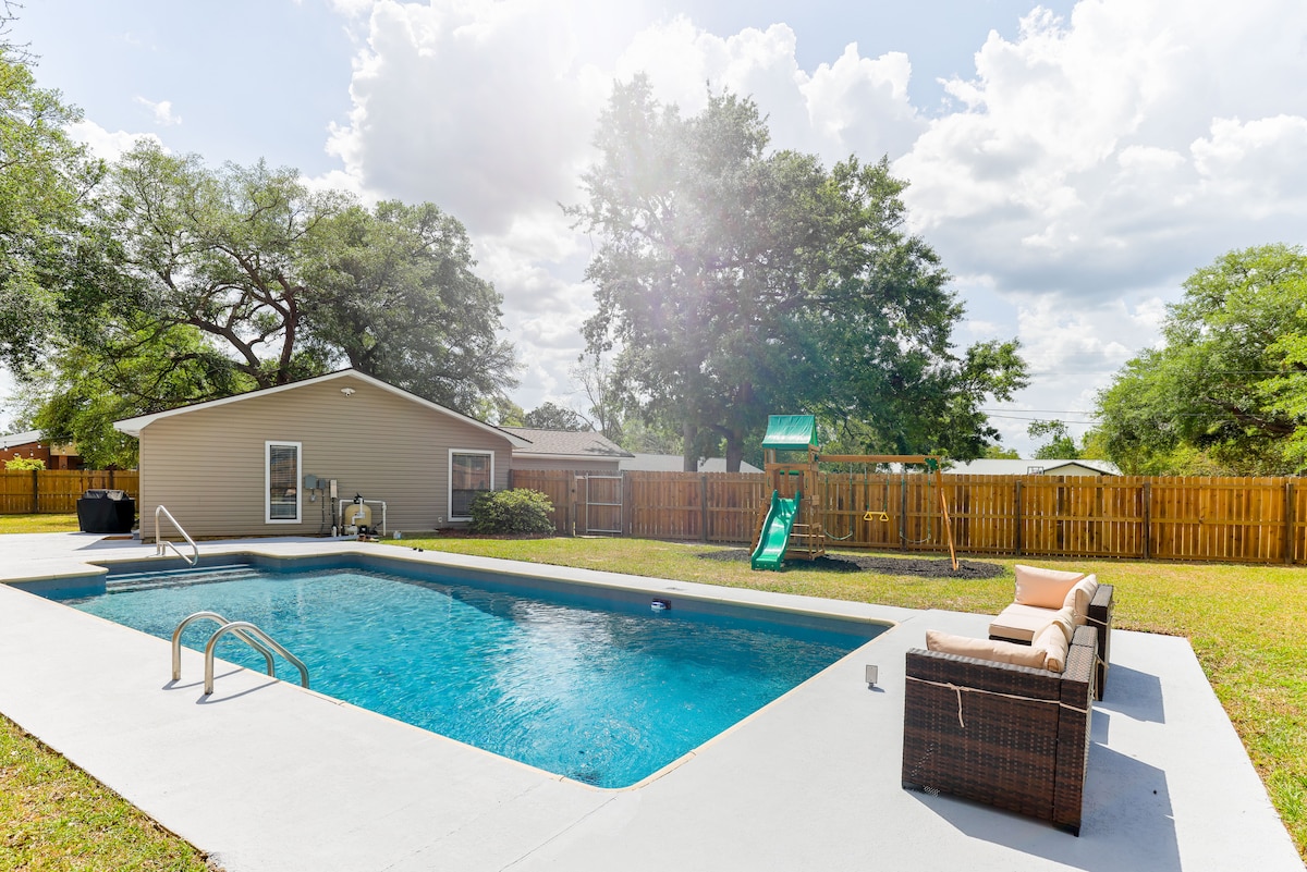 Ontdek de perfecte mix van comfort en elegantie in deze volledig gerenoveerde retraite met 4 slaapkamers en 3 badkamers. 2 kingsize bedden, 1 queensize bed en 2 stapelbedden. Geniet van een zoutwaterzwembad met een zonneplank, kom samen rond de vuurplaats in de buitenlucht of laat de kinderen hun eigen fort verkennen. De ruime grillruimte maakt buiten dineren een fluitje van een cent. Of je nu familie bezoekt, Valdosta verkent of gewoon ontspant, je zult het geweldig vinden om op slechts enkele minuten van VSU, het ziekenhuis en de beste winkel- en eetgelegenheden van de stad te zijn.
