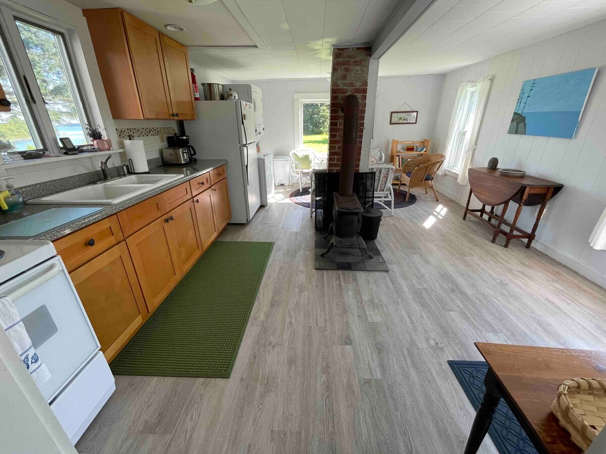 Lakefront home steps from Gardner Lake, Whiting, Maine. Tile floors, wood interior, granite countertops, dishwasher, w/d, radiant heat and heat pump. Awesome views/sunsets. Deck/grill. Shared water access with adjacent cabin. Wi Fi. Roku tv - No cable. Message owner for long term rates. Long term stays require references. Extra twin bed and cot in basement living area. Adjacent cabin if available in summer for additional fee. No pets. No smoking of anything or vaping on premises.