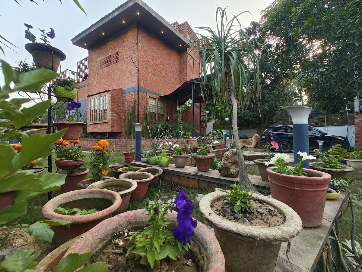 Kom een stap dichter bij de natuur, comfort en gemak in ons charmante Bluebell huisje! 10 minuten van de luchthaven, 20 minuten van het treinstation Charbagh, vlak achter de beroemde Lulu Mall, op steenworp afstand van de Palassio Mall, op slechts 500 meter van Medanta Hospital, is ons huisje strategisch gepositioneerd voor een ongeëvenaard verblijf. Gelegen in het hartje Sushant Golf City, dient het als het ideale knooppunt voor je bezoek aan Lucknow! Samen met een kingsize bed krijg je twee extra opklapbedden.