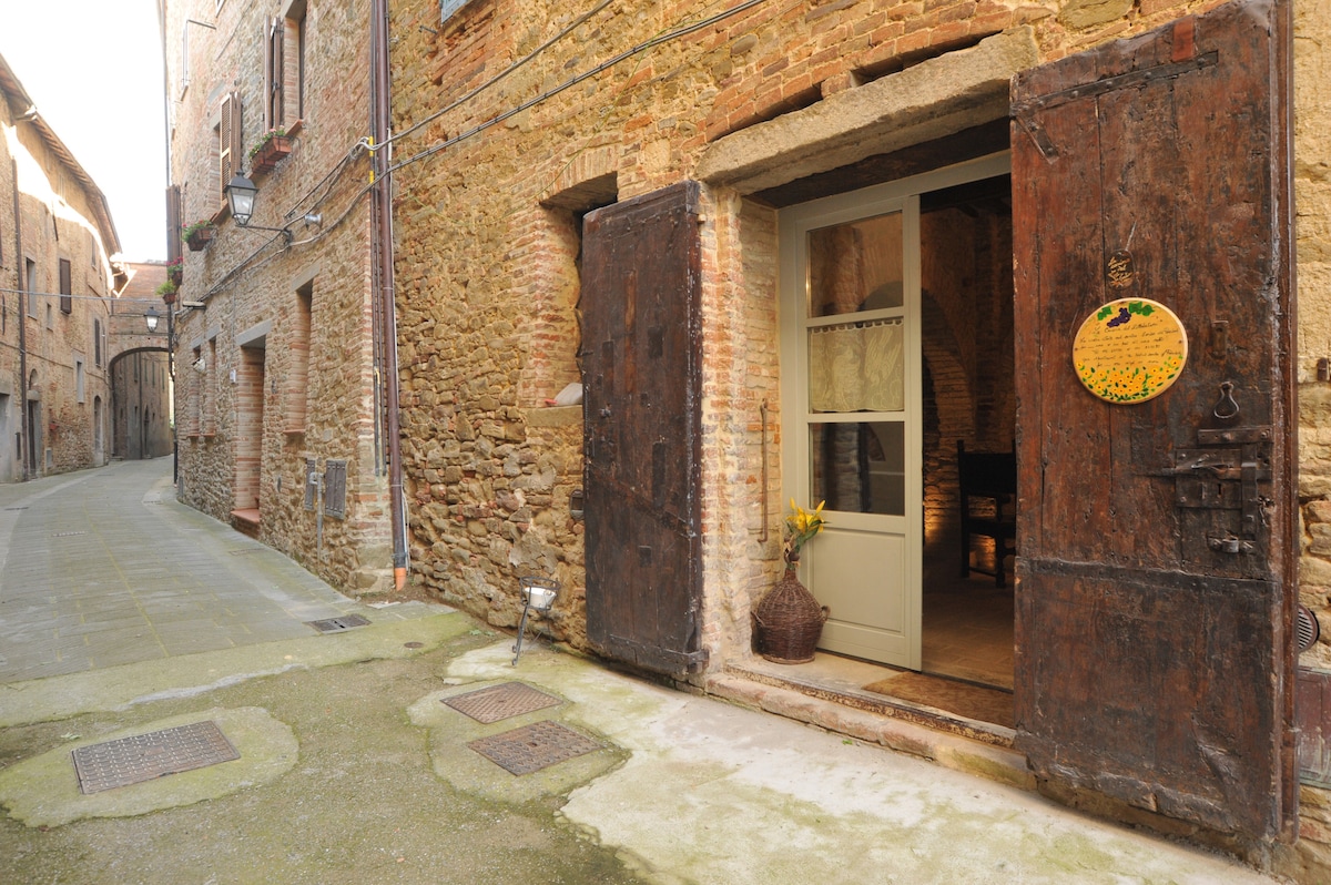 Het huis heeft een zeldzaam en betoverend uitzicht op de Val d'Orcia en Monte Amiata, wat zorgt voor maximale privacy. Het interieur weerspiegelt de charme van de Toscaanse stijl, met antieke meubels en afwerkingen gemaakt door lokale ambachtslieden. Het is uitgerust met een slaapkamer met tweepersoonsbed, een grote woonkamer met een grote tafel, een volledig uitgeruste kitchenette, een slaapbank voor twee personen voor de open haard, in de woonkamer. Buiten kun je op de patio eten met de kleuren van de zonsondergang als achtergrond.