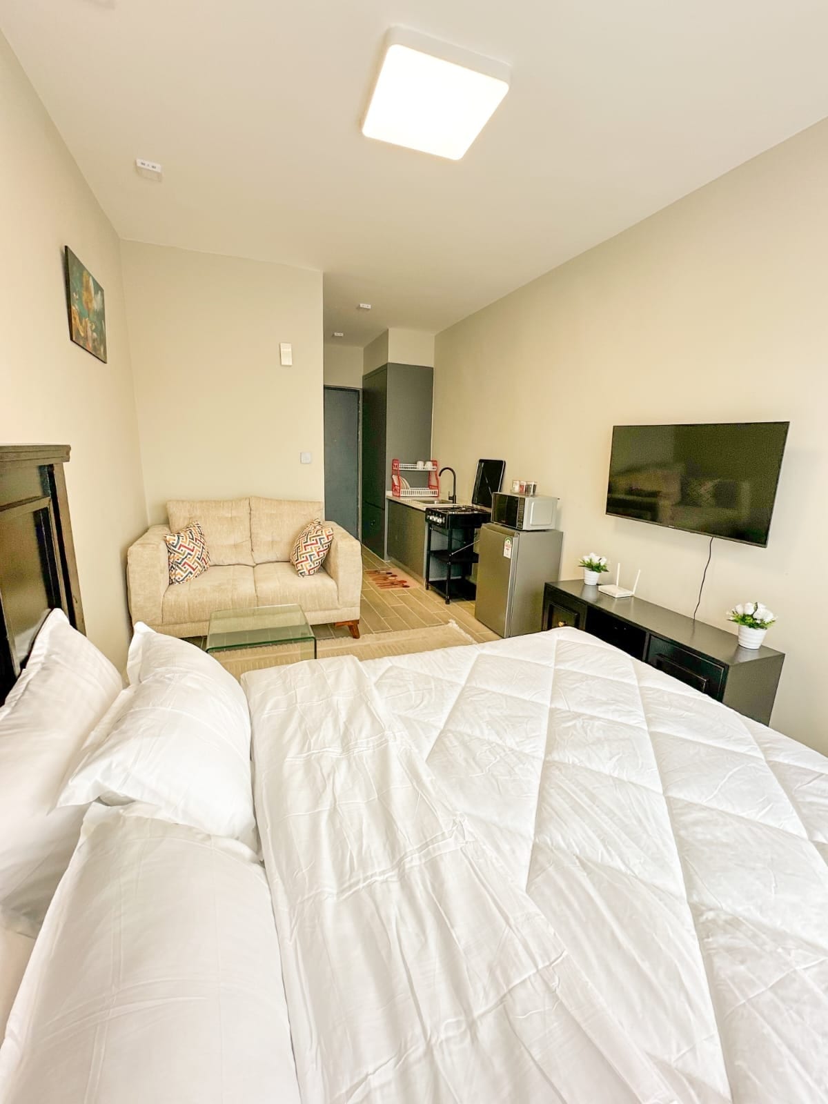 Ervaar ongeëvenaarde sereniteit en comfort in het Kasarani Stadium Views Apartment. Ons unieke en ruime toevluchtsoord kijkt uit op het bruisende stadion en biedt een perfecte mix van opwinding en rust. Geniet van rustige ochtenden met een adembenemend uitzicht, ontworpen met elegantie en moderne voorzieningen. Onze gezinsvriendelijke omgeving zorgt ervoor dat alle leeftijden zich thuis voelen, met voldoende ruimte om te ontspannen en tot rust te komen in een rustige, serene buurt. Kies ons voor een onvergetelijk verblijf dat comfort en charme perfect in balans brengt