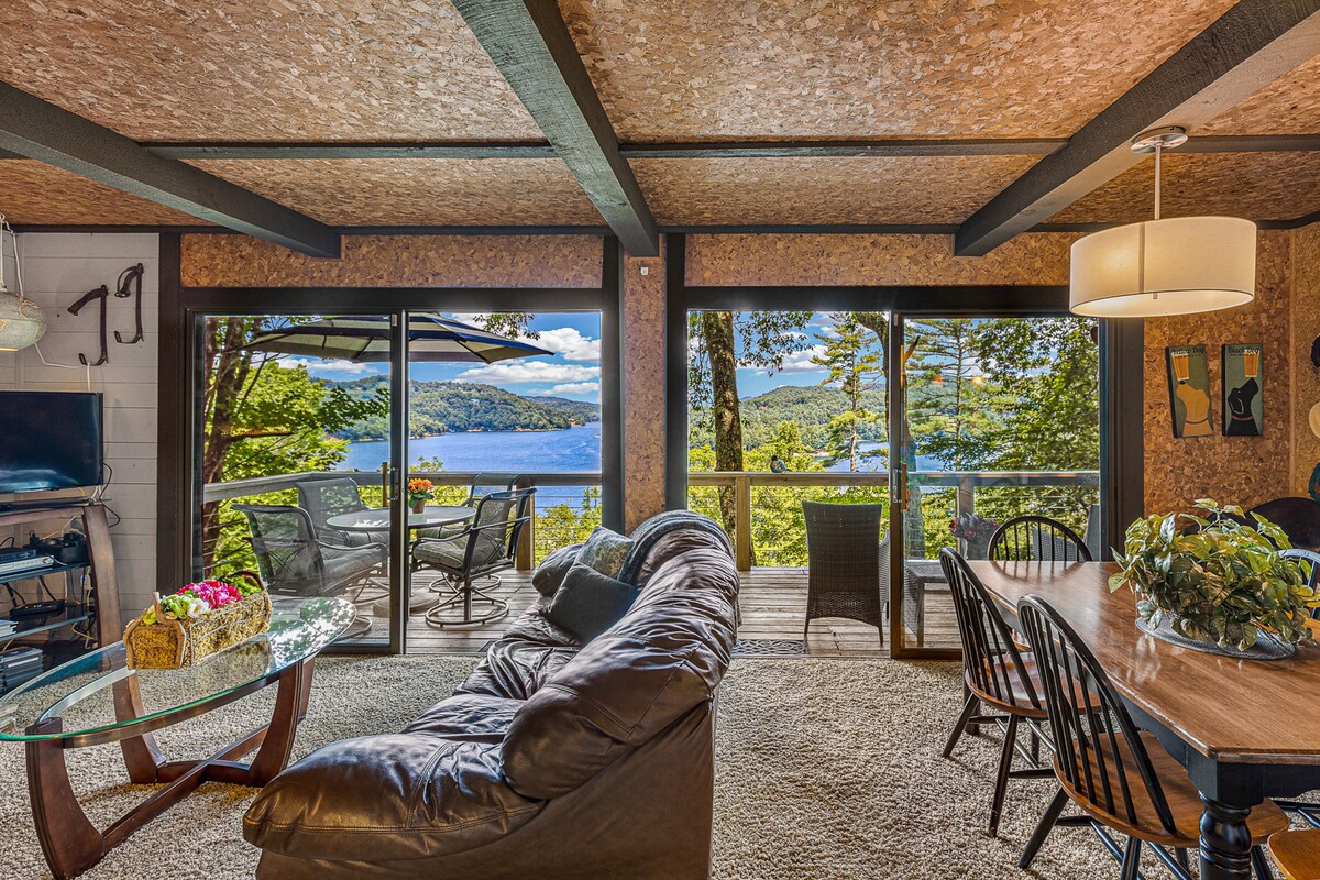 Mom's Place is een gezellige berghut met twee verdiepingen die hoog op een bergtop ligt met uitzicht op Lake Glenville met totale privacy, maar op slechts enkele minuten van Cashiers, Glenville, Highlands, Sapphire en gemakkelijke rijtoegang tot Lake Glenville. De comfortabele stoelen, houtskoolgrill en parasoltafel van het grote dek zijn onweerstaanbaar voor bbq 's en geweldig uitzicht!! Mom's Place is ingericht met gezellige leren meubels, oud gereedschap, rustieke designkenmerken en moderne accenten. Alle bedden zijn pluizig en comfortabel!!