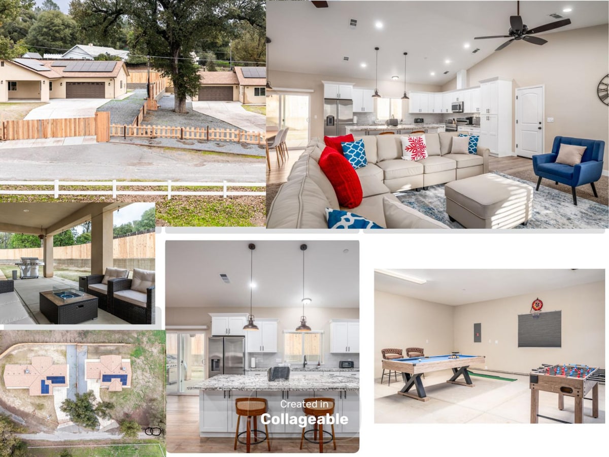 Je familie zal dicht bij alles zijn!! Prachtige centraal gelegen binnenstad Oakhurst huis met complete keuken (ontbijt + Starbucks koffie inbegrepen) woonkamer +open haard, werkruimte, grote patio, wasruimte en 2 slaapkamers - buitenpand met picknickplaats met barbecue+ hoefijzers +cornhole +mountainbikes - Loop of fiets naar STARBUCKS, restaurants, brouwerijen, distilleerderij en meer. 12 minuten naar Bass Lake -21min naar YOSEMITE -13 minuten naar Chukchansi Casino -10min naar Coarsegold -17min 2 Sugar Pine & more ww • DropMyPin •com