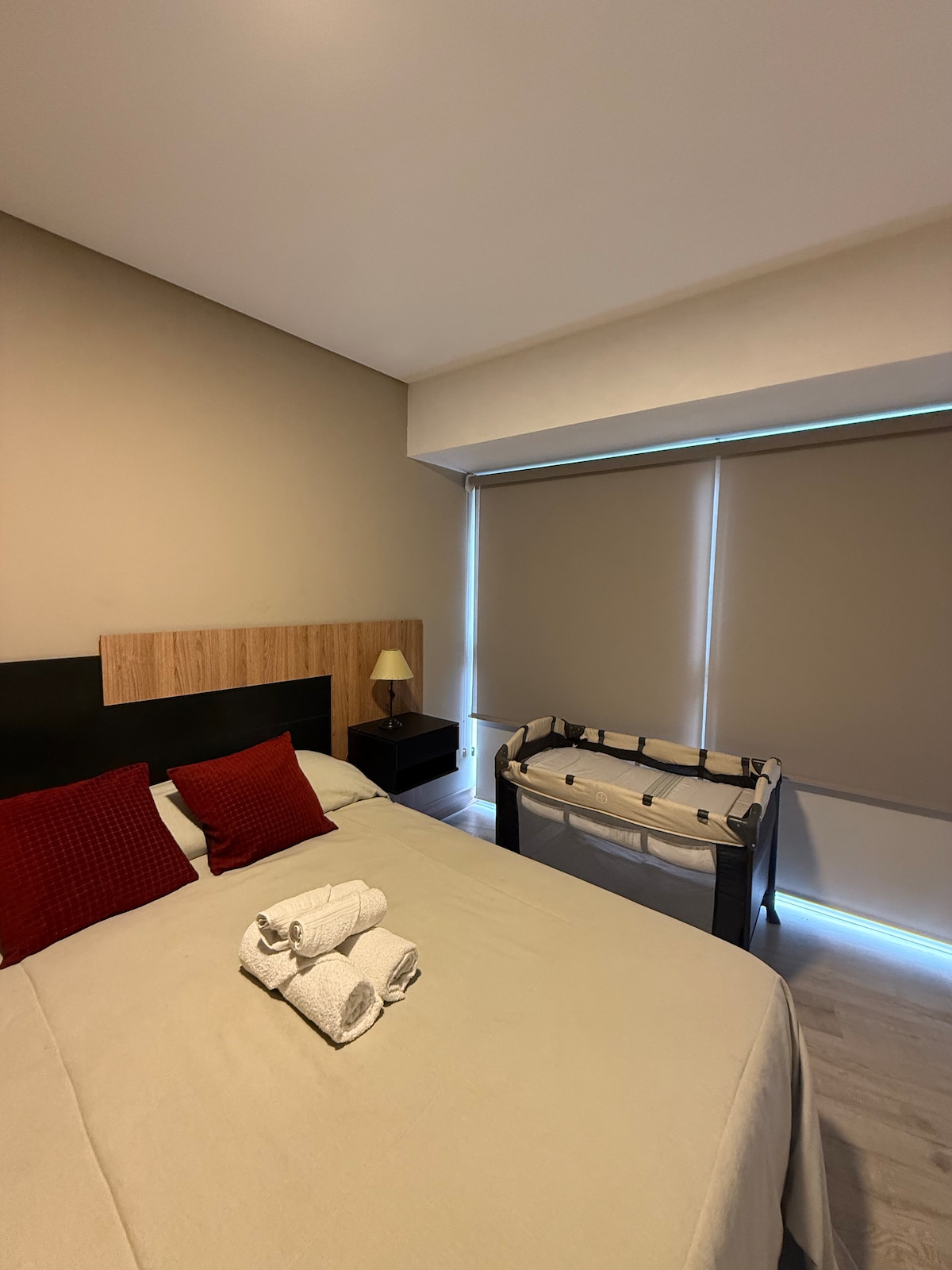 Luxe appartement in de prestigieuze Leloir Tower, gelegen in een woonwijk (Fifth Section) op een paar blokken van het Parque General San Martín en Av. Arístides Villanueva waar je meerdere gastronomische voorstellen kunt proeven. Op de 14e verdieping ben je verrast door het panoramische uitzicht op de stad Mendoza. De dpto heeft een ruime kamer en een comfortabel kingsize bed, smart-tv en een eigen badkamer. De andere kamer heeft een slaapbank voor 2 personen en een 50-inch smart-tv.