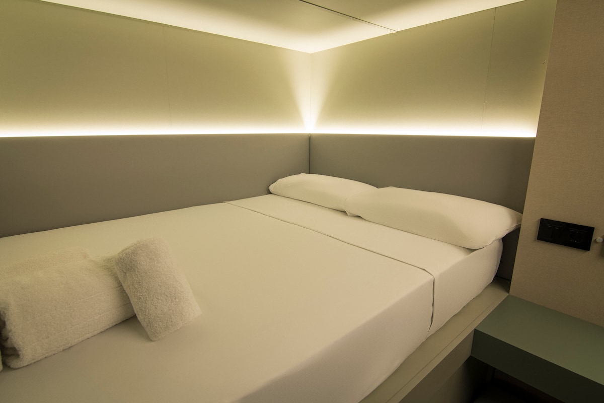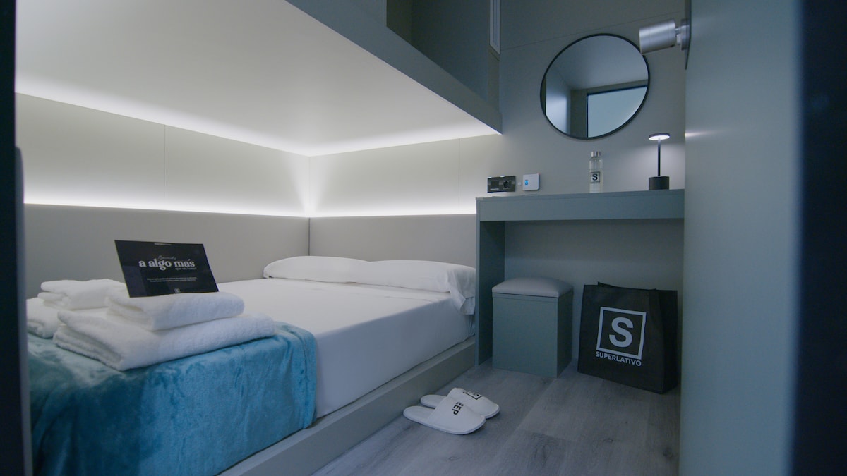 Cama económica de 170 cm y locker con cerradura digital en habitación compartida mixta con 6 camas y con baño privado, aire acondicionado, calefacción, espejo de cuerpo entero, perchas y balcón