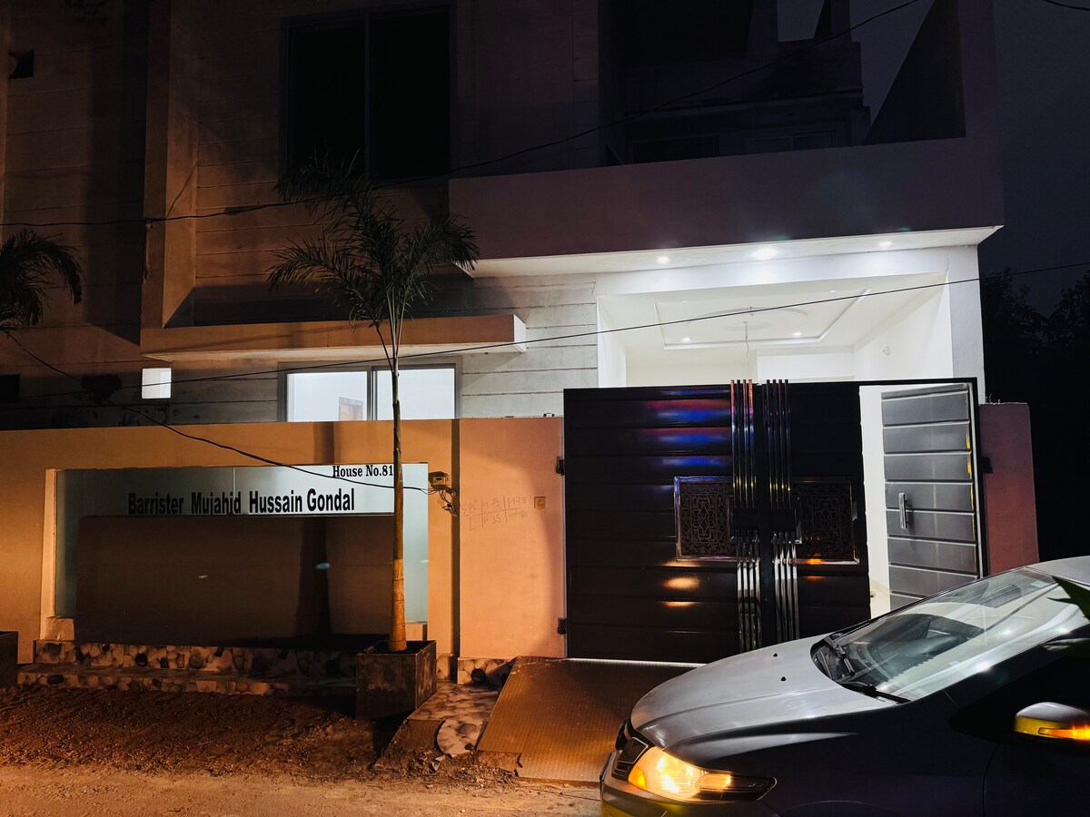 Het is een compleet huis voor familie. Voor gezinnen is het de beste plek om te verblijven voor kortetermijn- en langetermijnverblijven. Als een gezin wil inchecken, zal ik een volledig huis verhuren aan elke familie met 2 slaapkamers met een complete hal voor beide slaapkamers en een logeerkamer met 2 deuren, een in het huis en een tweede open buiten het huis in de hoofdstraat. Een badkamer met een slaapkamer en een grote hal. Keukenruimte is gereserveerd in een kant van de grote hal onder de trap naar het dak.