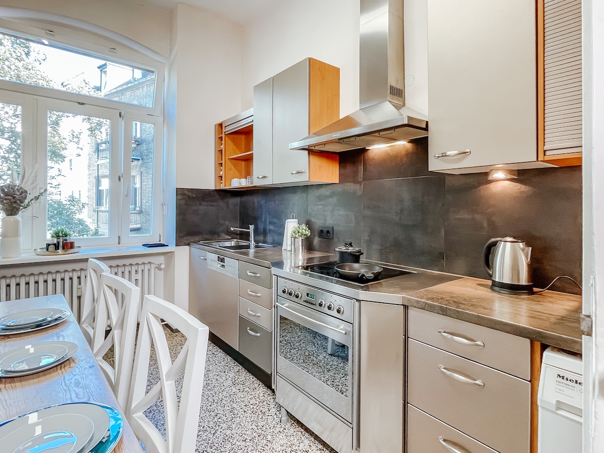 Ontspan en ontspan – in deze rustige, stijlvolle plek om te verblijven op het platteland. In een chique woonwijk ligt het op 10 minuten van het stadscentrum en het bospark. Met het openbaar vervoer bereik je alle spannende bezienswaardigheden. Winkelen, restaurants, apotheken en sportfaciliteiten zijn in de directe omgeving. Het appartement betovert met de kunstschilderij, het grote terras, de succesvolle verlichting en het vriendelijke meubilair met aandacht voor detail.
