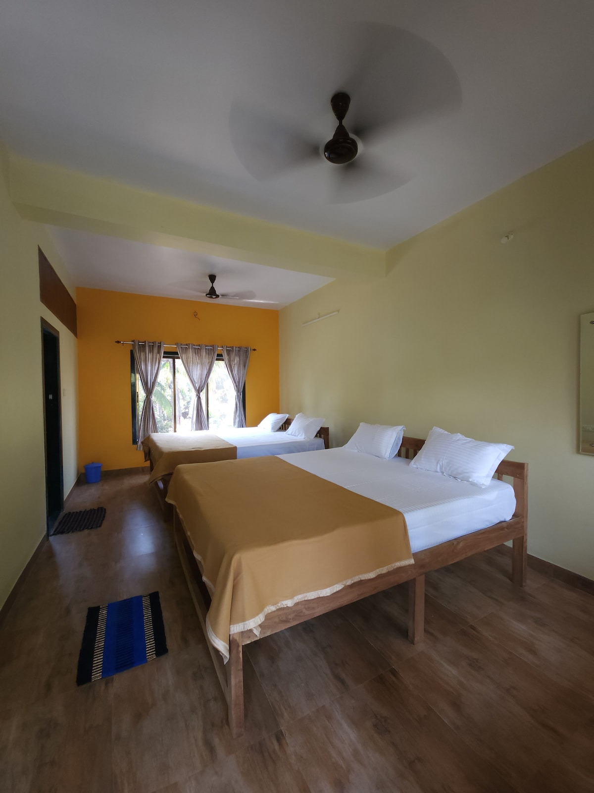 * Families preferred. No smoking or drinking. * Escape to our cozy homestay in Shrivardhan, just a few minutes from the beach. The space is most comfortable for 4 guests due to a single bathroom, but we can accommodate up to 5 adults. Enjoy air-conditioning, inverter backup, TV and Wi-Fi for a comfortable and convenient stay. While we don’t offer food or silverware,, there are several restaurants located just 5-10 minutes away, as well as nearby options offering homemade-style food.