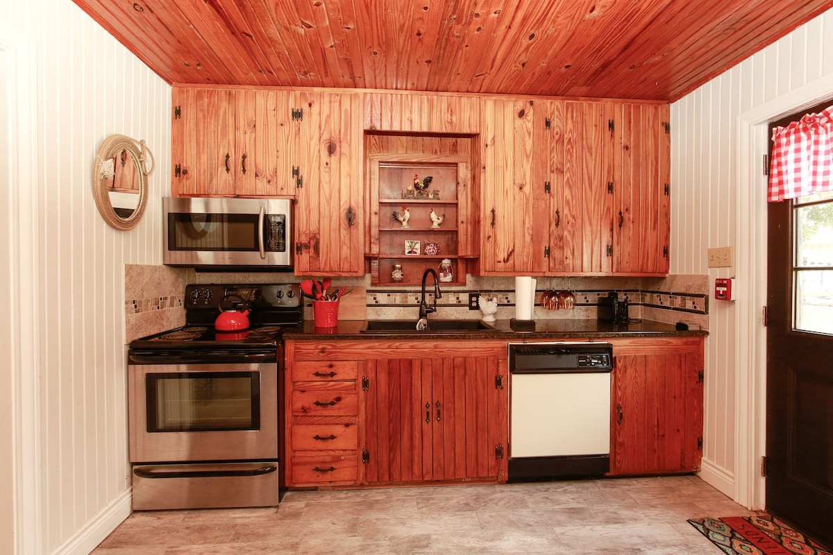 Ontspan in dit rustige studiohuisje met één bed in het Texas Hill Country! Dicht bij verschillende unieke Hill County-ervaringen en fine dining. We zijn binnen enkele minuten van het centrum van Marble Falls en al het plezier dat hoort bij het zijn op een van de mooiste en vredige plekken in heel Texas! Slechts drie minuten van Sweet Berry Farm! Aangezien er geen volledige keuken is, besteed je tijd aan verfrist in plaats van te koken. Neem de tijd om een aantal leuke nieuwe restaurants te ervaren of een picknick mee te nemen.