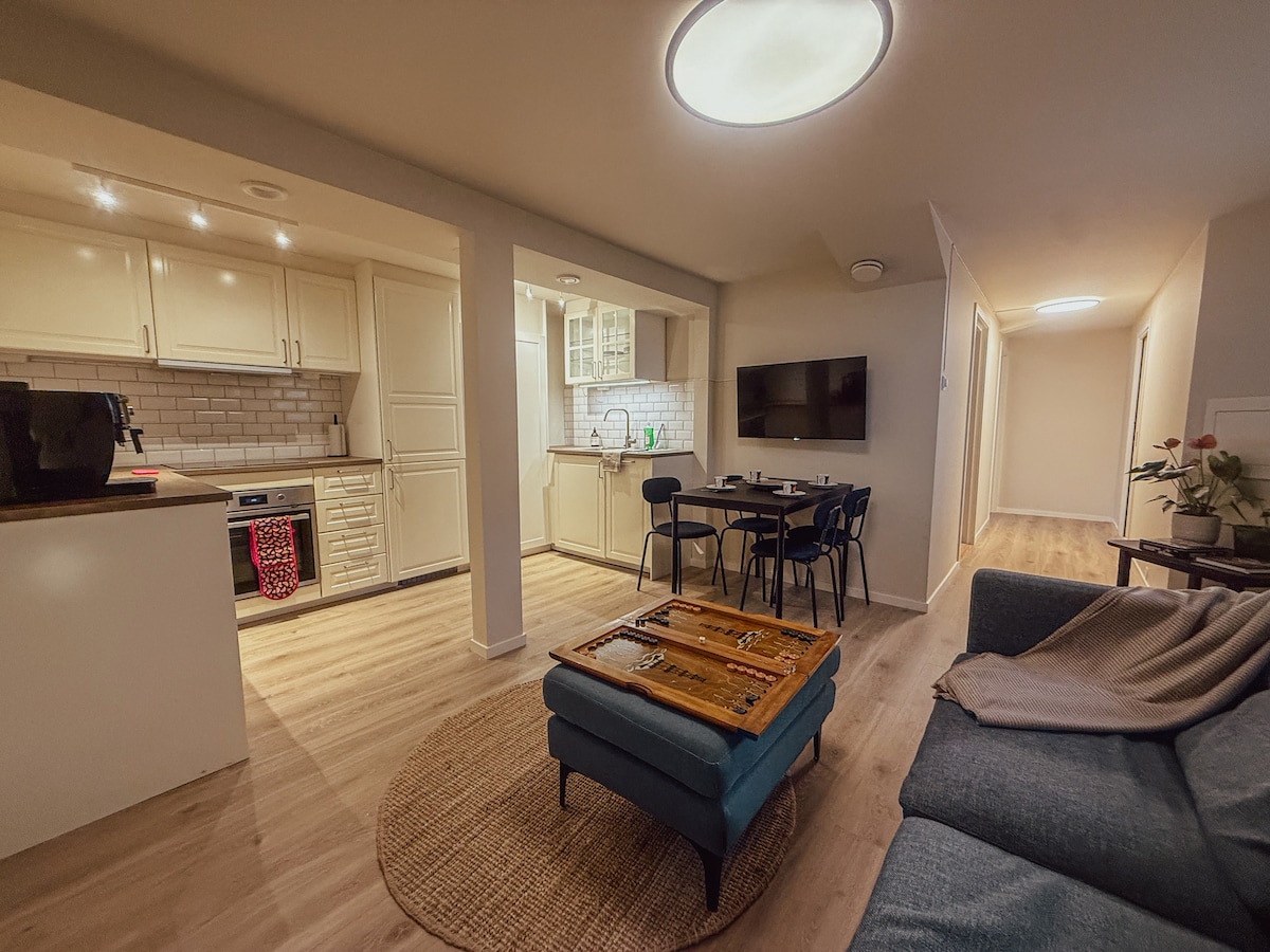 Len deg tilbake og slapp av på dette rolige, elegante stedet. Når du kommer inn døren så er du i stuen. Med privat balkong og peis. En sofa og queen size seng. Ta trappen ned for å komme til kjøkken og bad. Kjøkkenbenken er ganske liten, men den har induksjonstopp og stekeovn. Leiligheten passer for en til to personer som ønsker å være nær turterreng og skiløyper. Fint utgangspunkt for turer i naturen. Samtidig kun 30 minutter fra Oslo sentrum med museer og restauranter.
