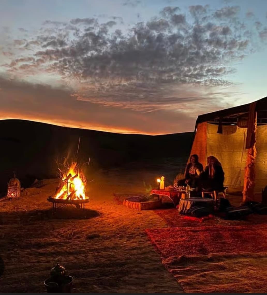 Experience a magical night in the Agafay Desert! Enjoy comfortable transport from Marrakech, a scenic camel ride, and a delicious Moroccan dinner under the stars. Feel the rhythm of live Amazigh music and a breathtaking fire show. Wake up to a stunning sunrise and savor a traditional Amazigh breakfast for an unforgettable desert escape.