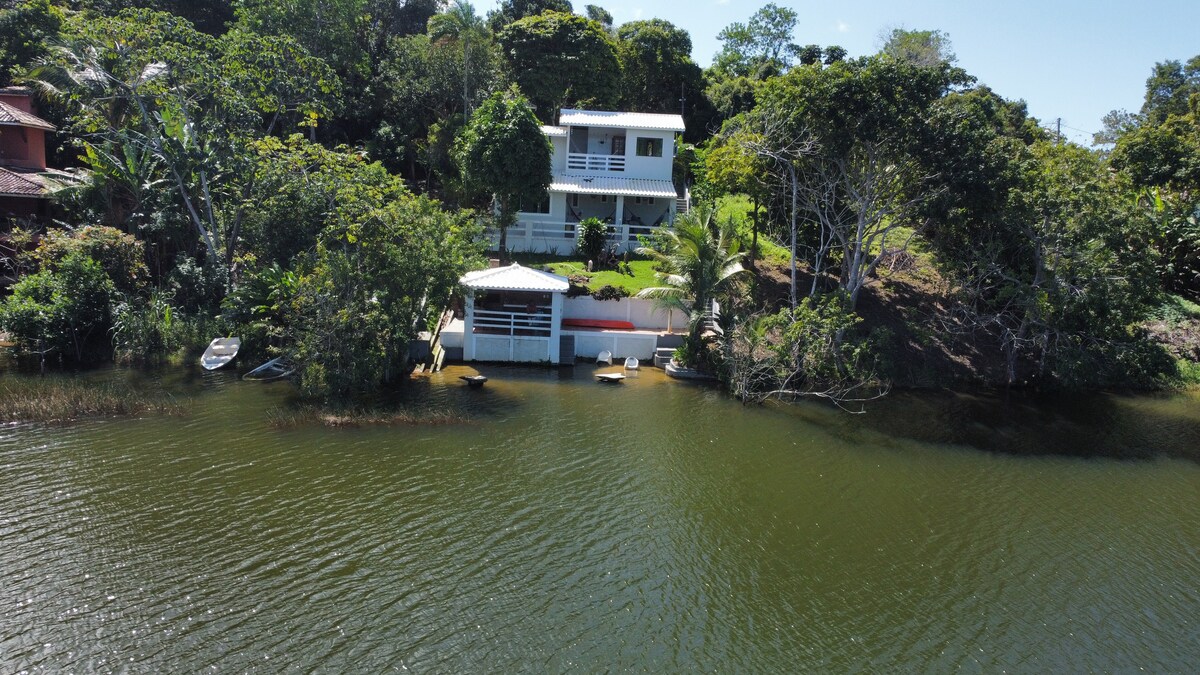 Huis midden in het Atlantische Woudreservaat, aan de rand van het Lagoa de Aruá! Perfect voor familie en familie. Eigen tuin en gazon! Onlangs HERZIEN voor de beste dagen van de zomer! 03 Suites allemaal met NIEUWE AR Conditioning! BBQ, douche, PRIVÉZWEMBAD en gastronomische omgeving!!! Op Beira da Lagoa! Kajak en stand-up beschikbaar. Complete infrastructuur die een high-end huis kan bieden, in contact met de natuur en een sprong van Vila de Praia da Forte. Geweldig restaurant ernaast.