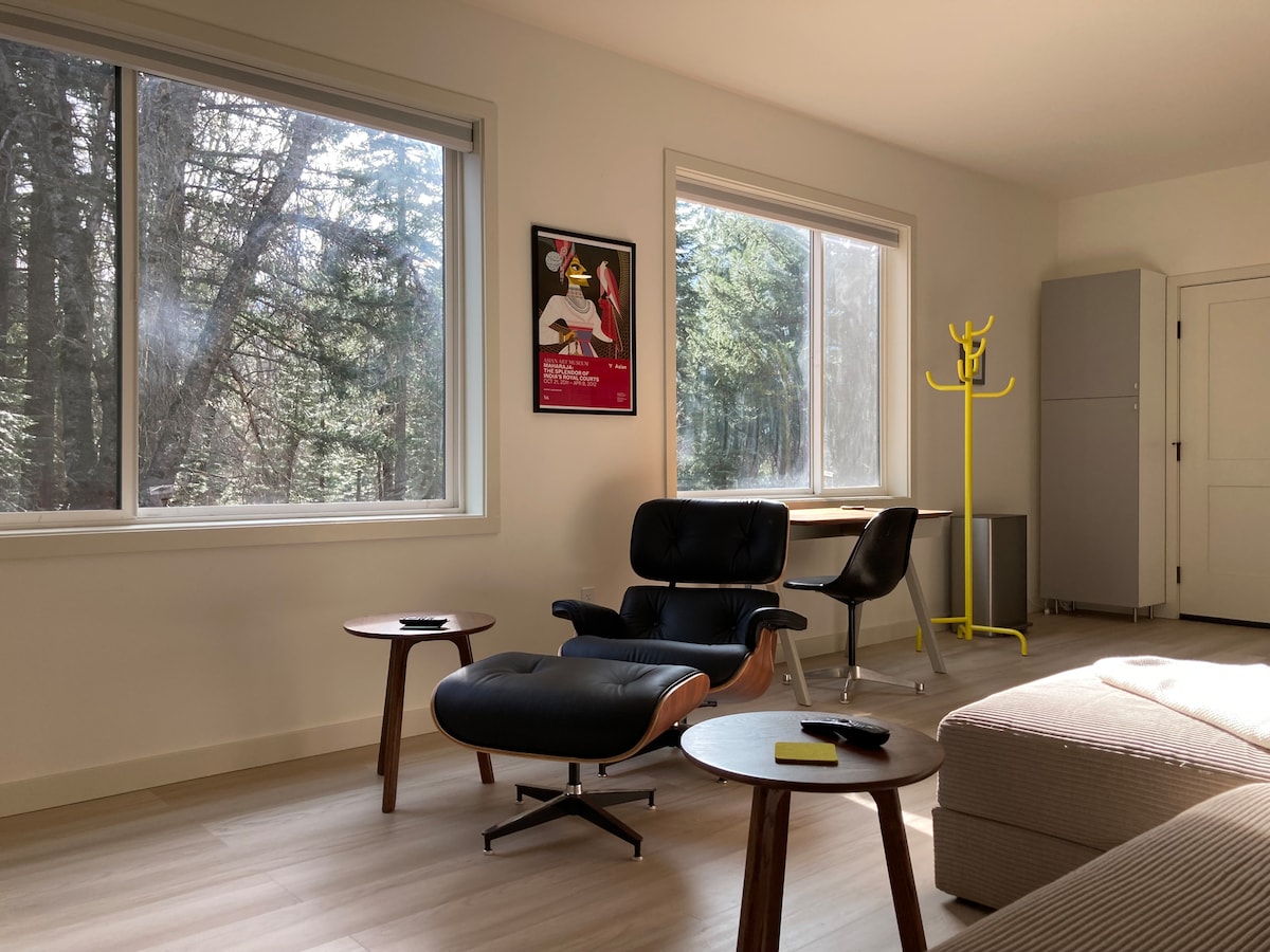 Zoek je een familievakantie? Een perfect romantisch uitje of huwelijksreis? Een reis met vrienden of alleen? Wat je plannen ook zijn, The Great Escape roept je naam! Slechts een mijl verwijderd van de rivier, botanische tuin, picknickplaatsen, stadspark en het centrum. Dit stijlvolle, gezellige berghuis van 2 verdiepingen biedt plaats aan maximaal 4 gasten. Luister naar een vinylplaat terwijl je beneden airhockey of darts speelt, ontspan op de schommel met je favoriete boek of hang rond op het dek tussen omliggende ceders.
