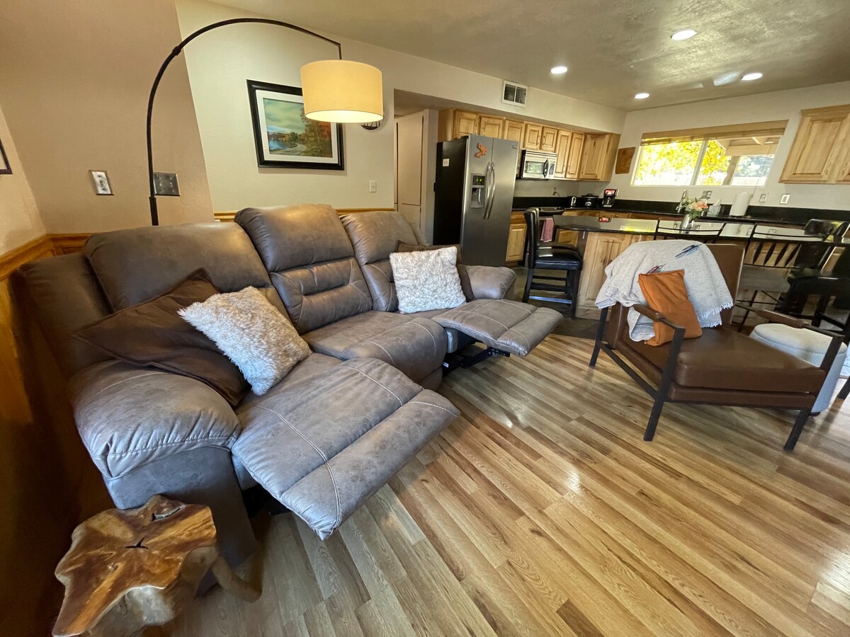 Take it easy at this unique & charming getaway in Pinetop. Secluded & comfortable, indoors & out. Full kitchen amenities and laundry, plus outdoor lawn area & easy parking. Leave the tension behind and enjoy the stress-free environment up in the cool pines! Enjoy the views of the trees and sunsets from this space! 1 bedroom w/ queen bed. Nice comfortable & oversized sectional Couch. Wifi & Smart TV. Tap water is very good here. *During winter weather 4x4 usually required