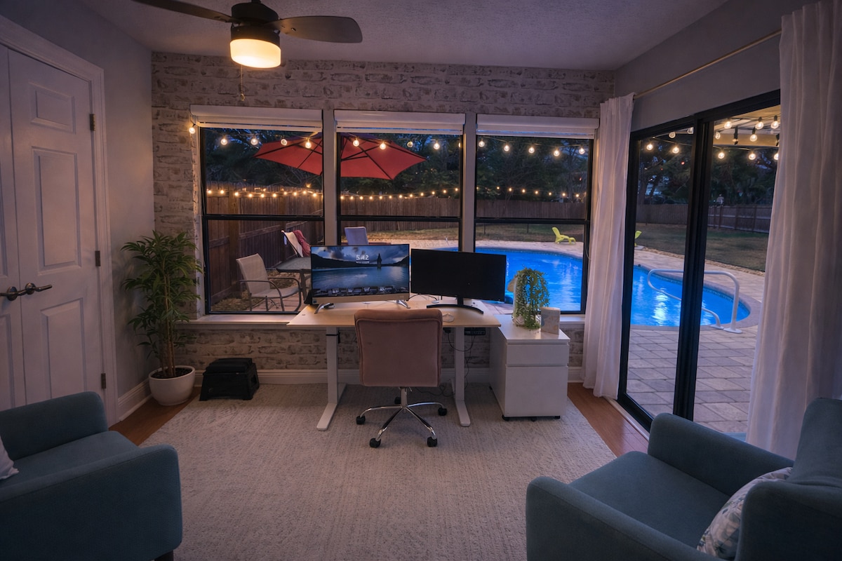 🔷 Bienvenido a Azure Escape, un alojamiento privado, moderno y bien ubicado en Lakeland. Ideal para parejas o viajeros, cuenta con dormitorio con cama para dos, baño completo, cocina equipada, área de trabajo, WiFi rápido, Smart TV y patio privado. A menos de 10 min del aeropuerto y del Sun ’n Fun Aerospace Expo , y cerca de Bonnet Springs Park, restaurantes y tiendas.