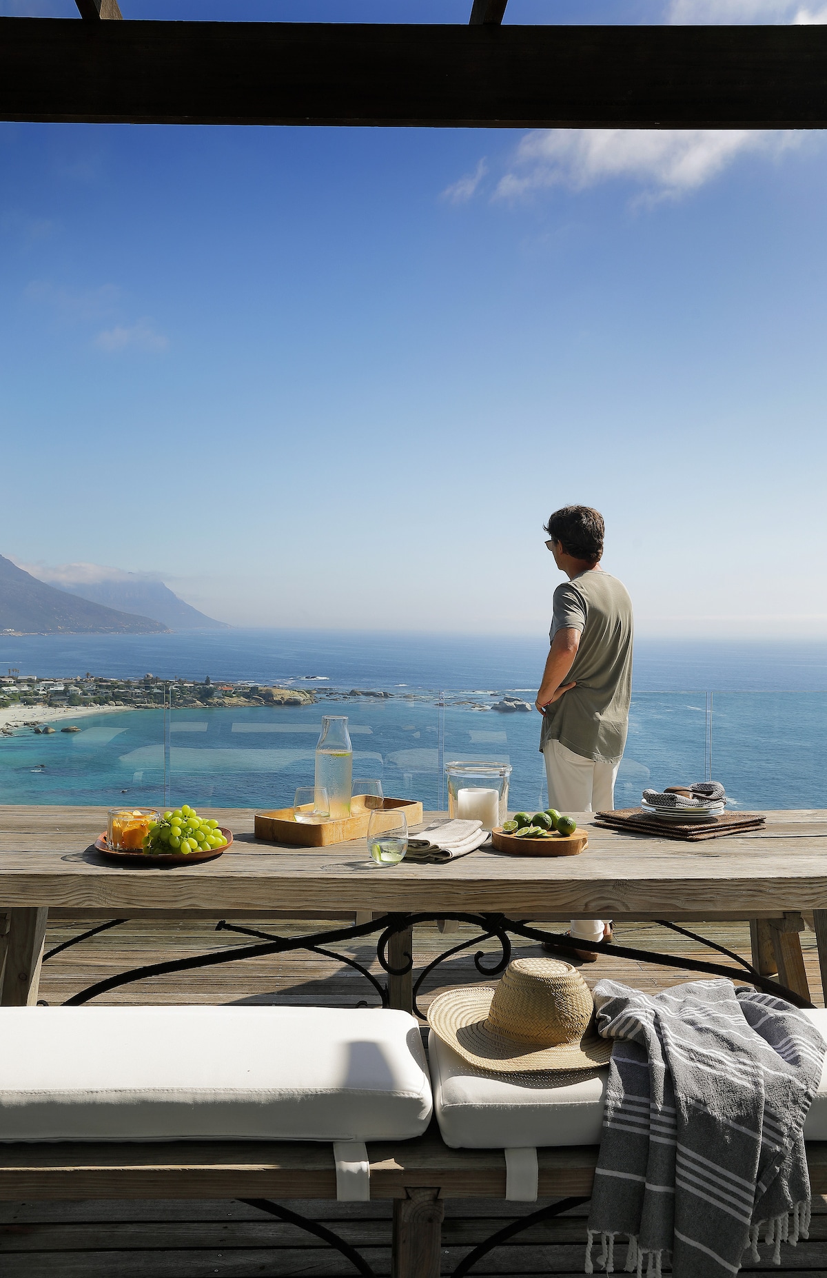 Ons studio-appartement komt uit op een balkon van 40 m ² met een panoramisch uitzicht op de Hout Bay Valley en het Helderberggebergte daarachter. Grote schuifdeuren verdwijnen in de muren en creëren een ongehinderde doorstroming binnen/buiten, terwijl de verhoogde positie je privacy beschermt. De open badkamer kijkt uit op een afgesloten geheime tuin met een glazen douche zonder frame. De accommodatie heeft een volledig uitgeruste kitchenette en wordt dagelijks onderhouden, behalve in het weekend en op feestdagen.