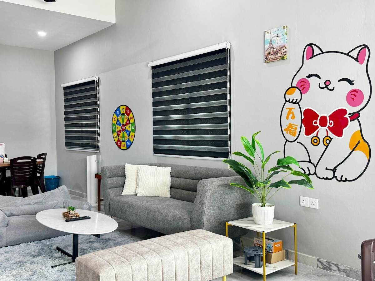 De nieuwste homestay in de stad Ipoh met stijlvol, warmte en uniek design. Elke kamer heeft een ander creatief designthema: de hoofdkamer heeft een Britse elegante stijl; de tweede kamer heeft een eenvoudige moderne stijl; de derde kamer heeft een Japanse Tatami-stijl. Trouwens, woonkamer, eetkamer en keuken zijn ontworpen als semi-open, terwijl eetkamer een bakstenen schilderij uit de jaren '70 met prachtig vakmanschap behoudt.